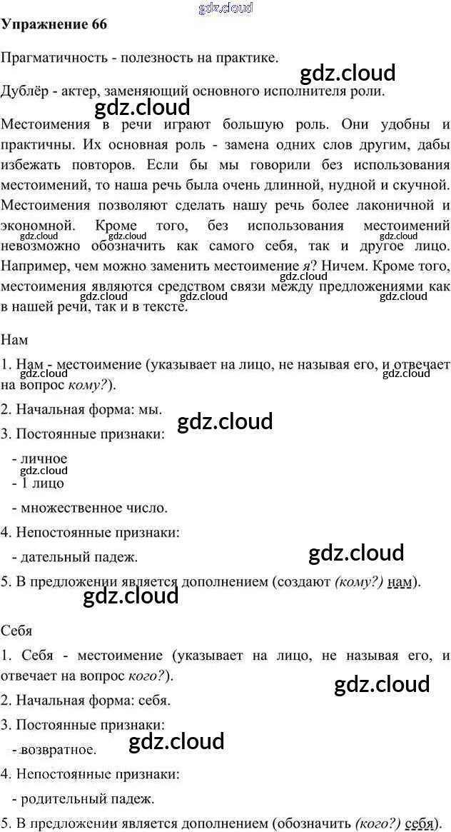 Ответ на задание 66 Учебник Русский язык за 6 (шестой) класс Быстрова, Кибирева, Гостева Инновационная школа 2016 Часть 1, 2