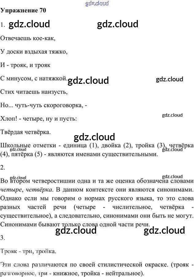 Ответ на задание 70 Учебник Русский язык за 6 (шестой) класс Быстрова, Кибирева, Гостева Инновационная школа 2016 Часть 1, 2