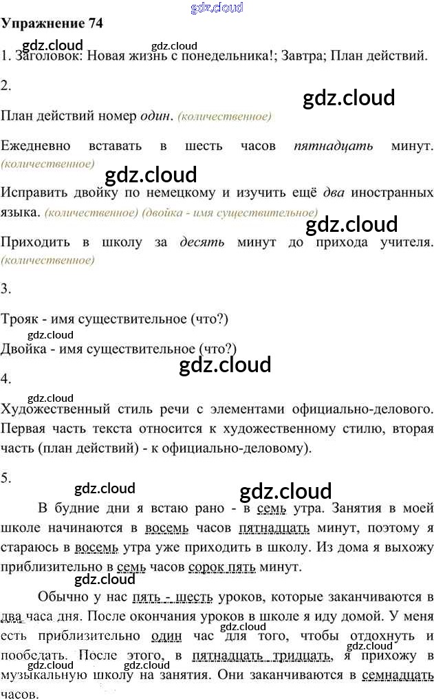 Ответ на задание 74 Учебник Русский язык за 6 (шестой) класс Быстрова, Кибирева, Гостева Инновационная школа 2016 Часть 1, 2