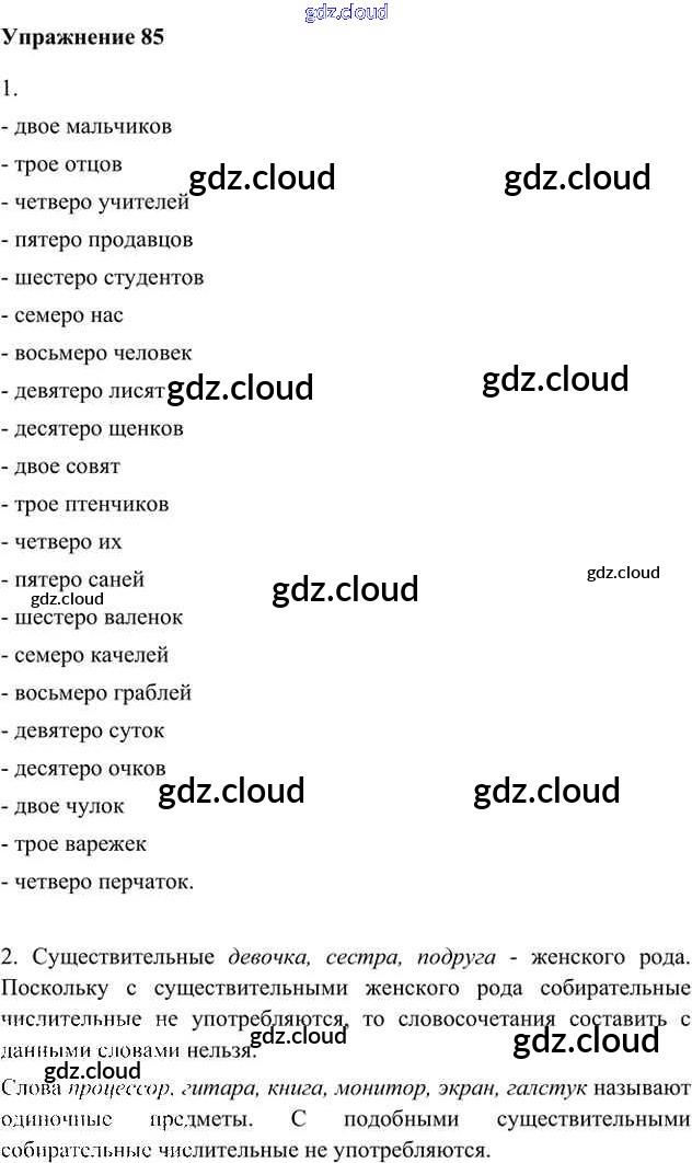Ответ на задание 85 Учебник Русский язык за 6 (шестой) класс Быстрова, Кибирева, Гостева Инновационная школа 2016 Часть 1, 2