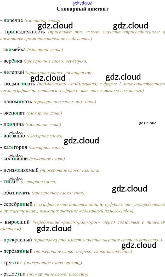 Словарный диктант Часть 2 (ответы) по Русскому языку 6 класс Учебник Быстрова Инновационная школа Часть 1, 2 Русское слово