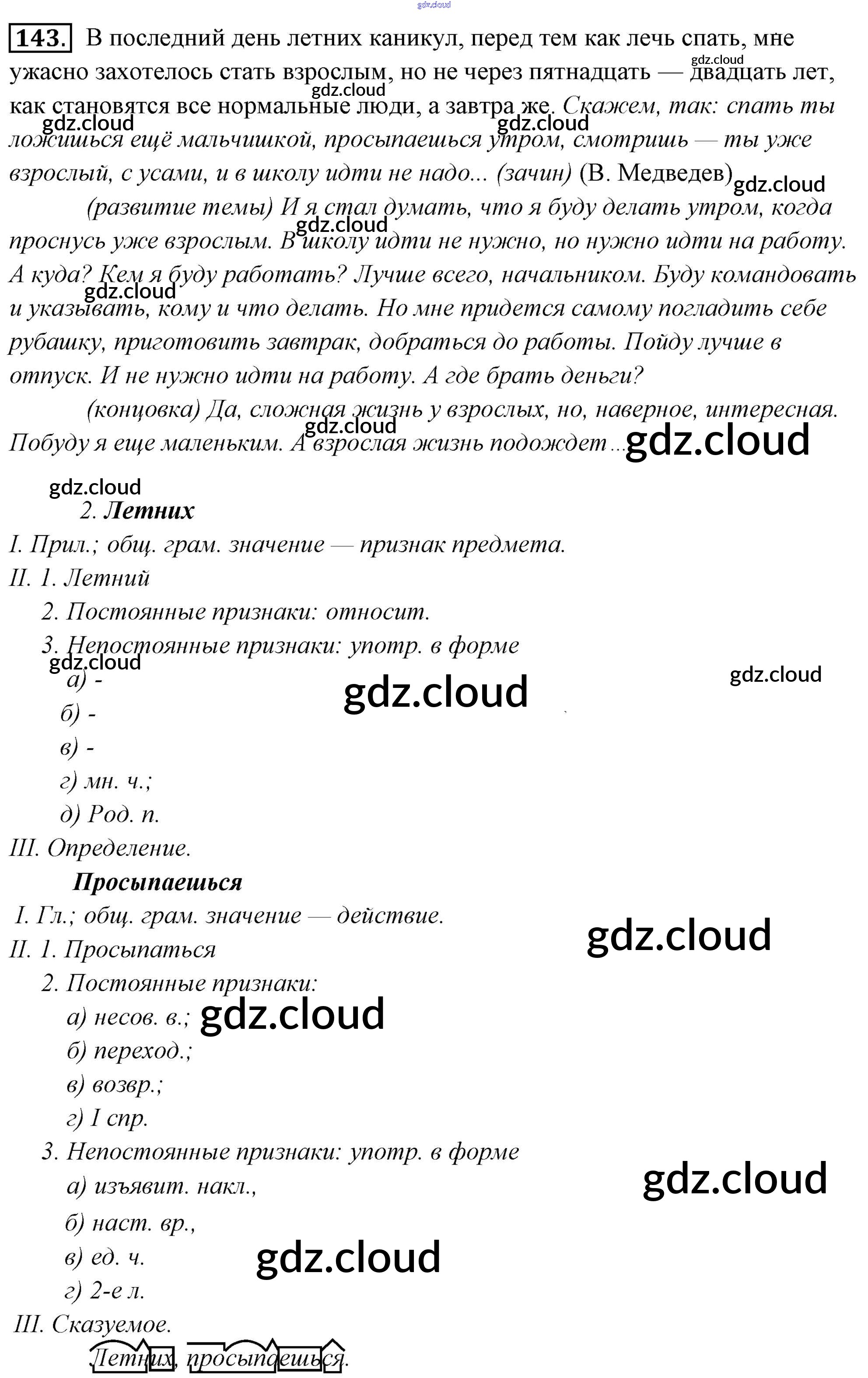 Ответ на задание 143 Учебник Русский язык за 6 (шестой) класс Львова, Львов 2013 Часть 1, 2 ФГОС онлайн и без номера телефона.
