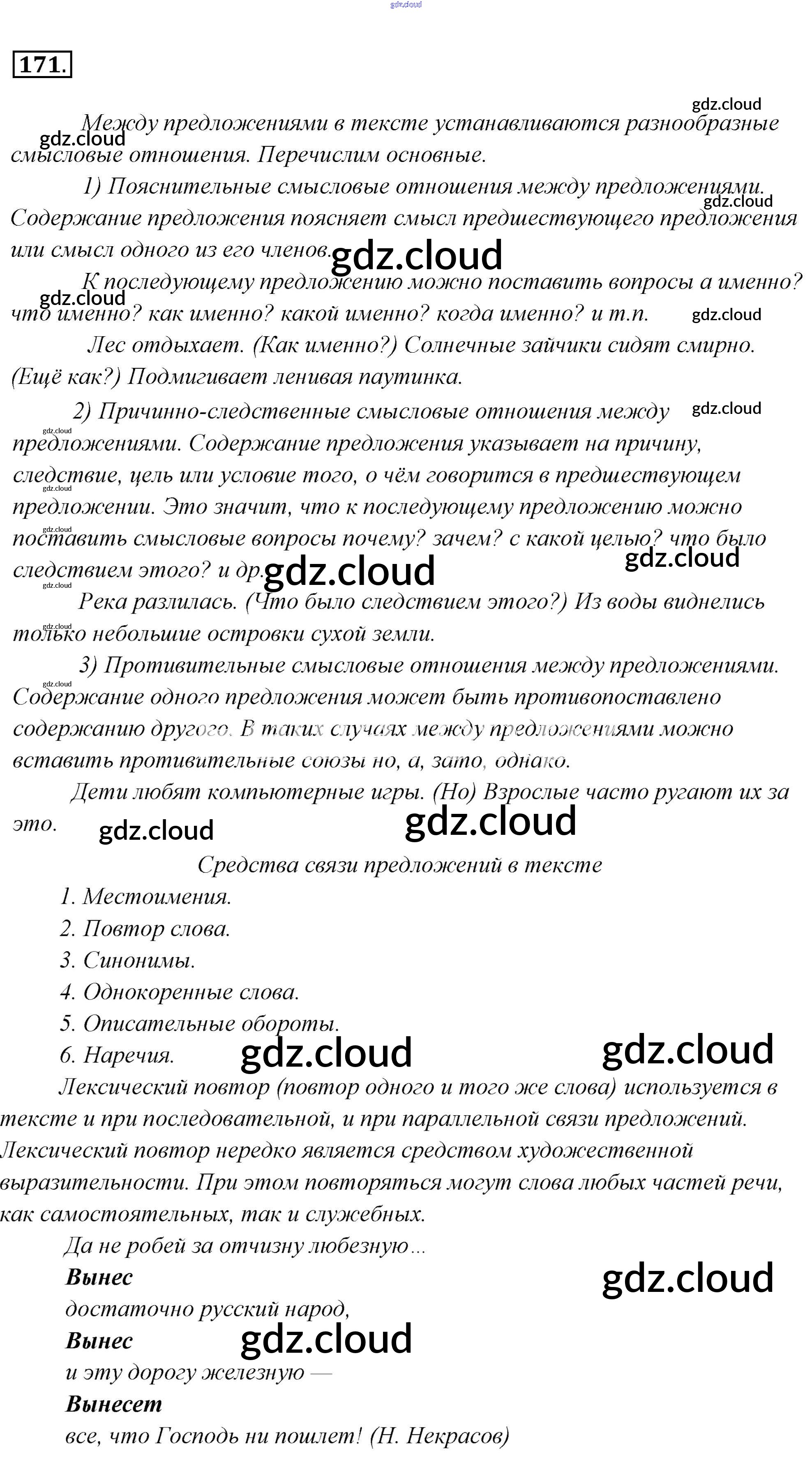 Ответ на задание 171 Учебник Русский язык за 6 (шестой) класс Львова, Львов 2013 Часть 1, 2 ФГОС онлайн и без номера телефона.