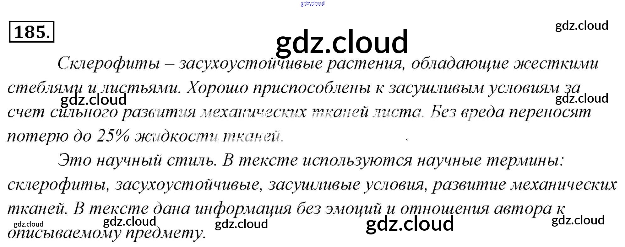 Ответ на задание 185 Учебник Русский язык за 6 (шестой) класс Львова, Львов 2013 Часть 1, 2 ФГОС онлайн и без номера телефона.