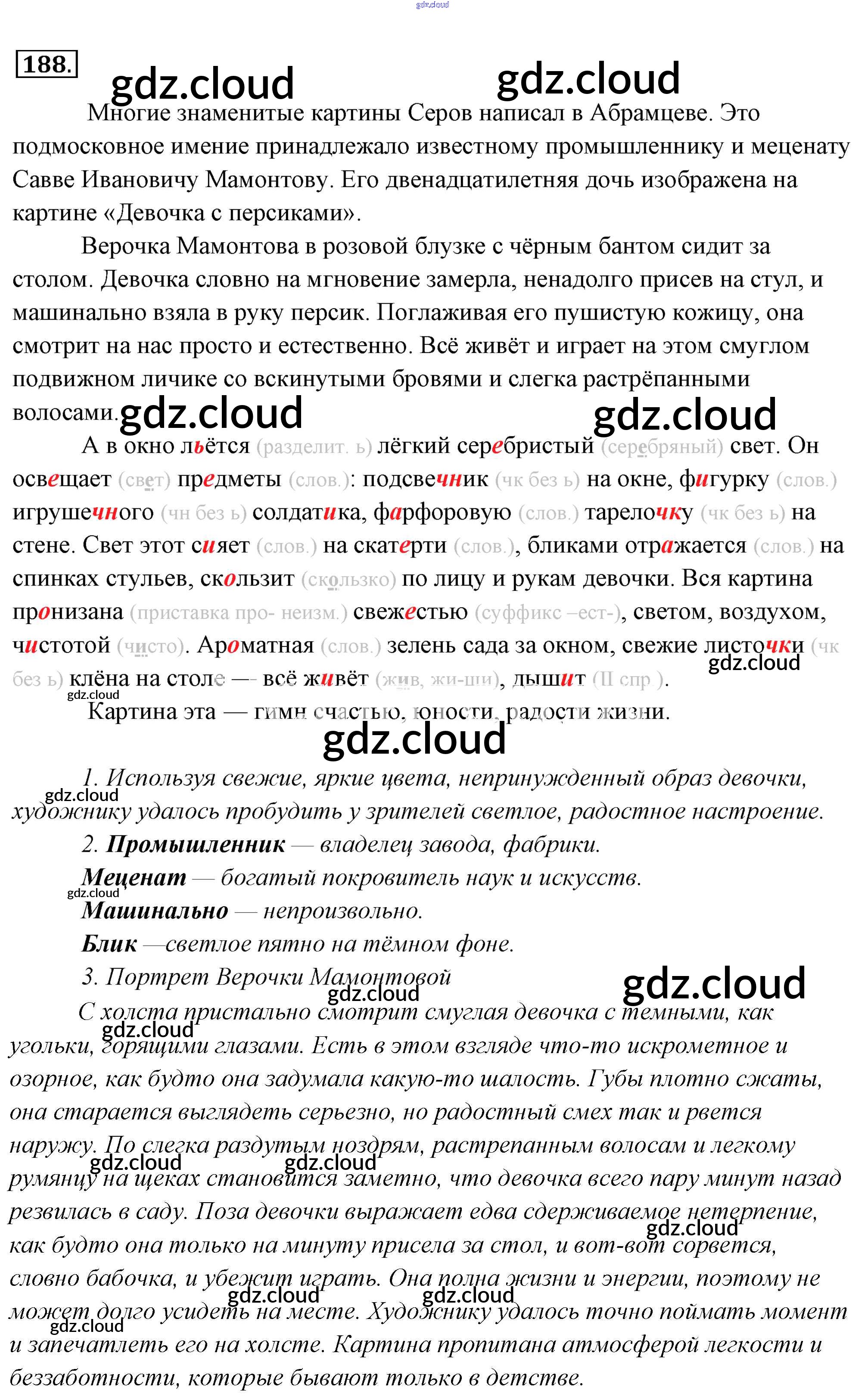 Ответ на задание 188 Учебник Русский язык за 6 (шестой) класс Львова, Львов 2013 Часть 1, 2 ФГОС онлайн и без номера телефона.