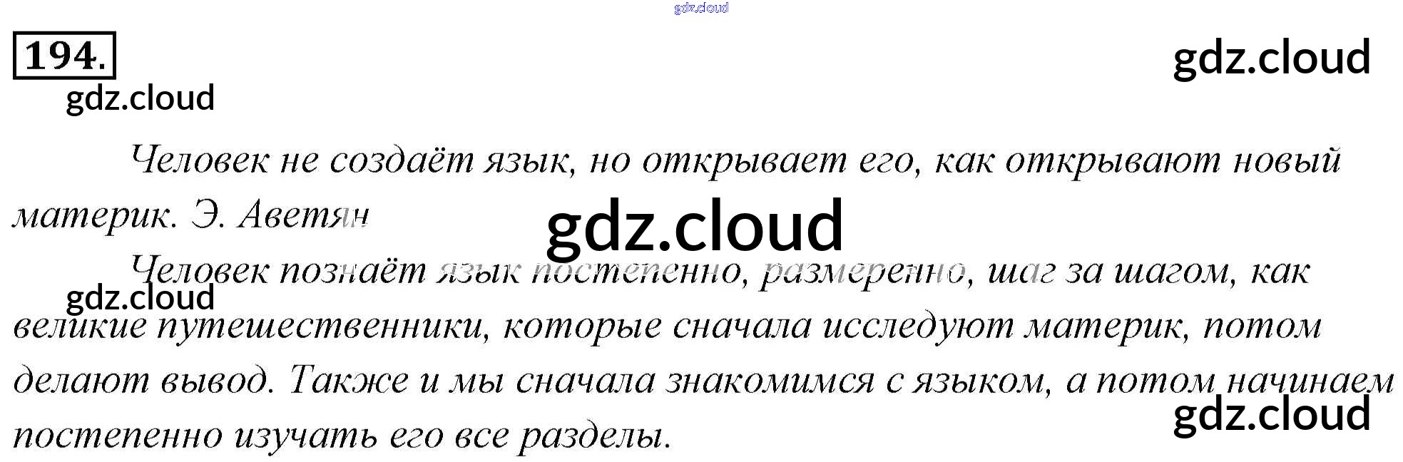 Ответ на задание 194 Учебник Русский язык за 6 (шестой) класс Львова, Львов 2013 Часть 1, 2 ФГОС онлайн и без номера телефона.