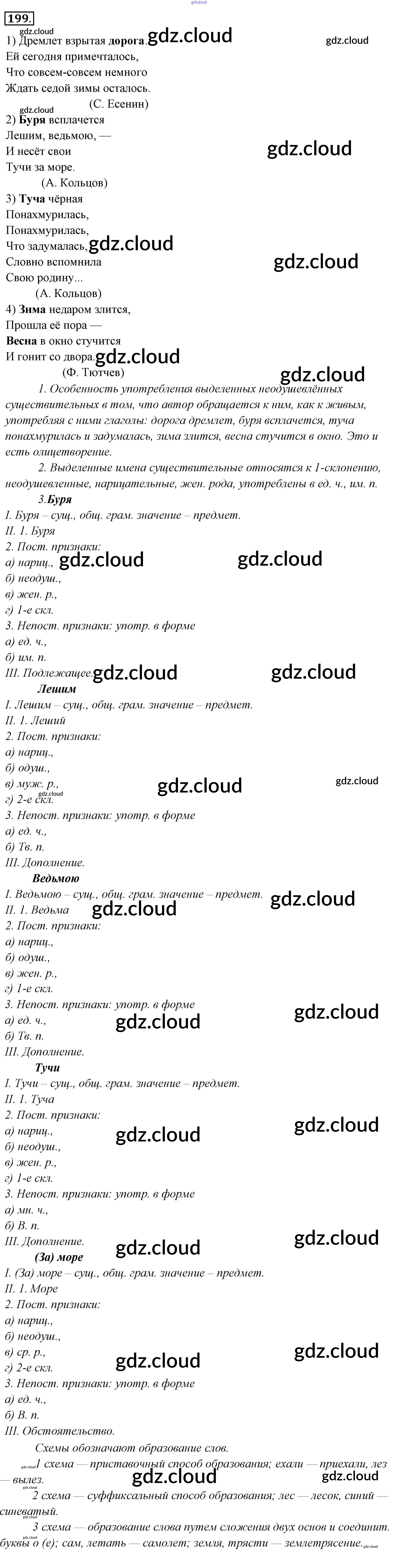 Ответ на задание 199 Учебник Русский язык за 6 (шестой) класс Львова, Львов 2013 Часть 1, 2 ФГОС онлайн и без номера телефона.