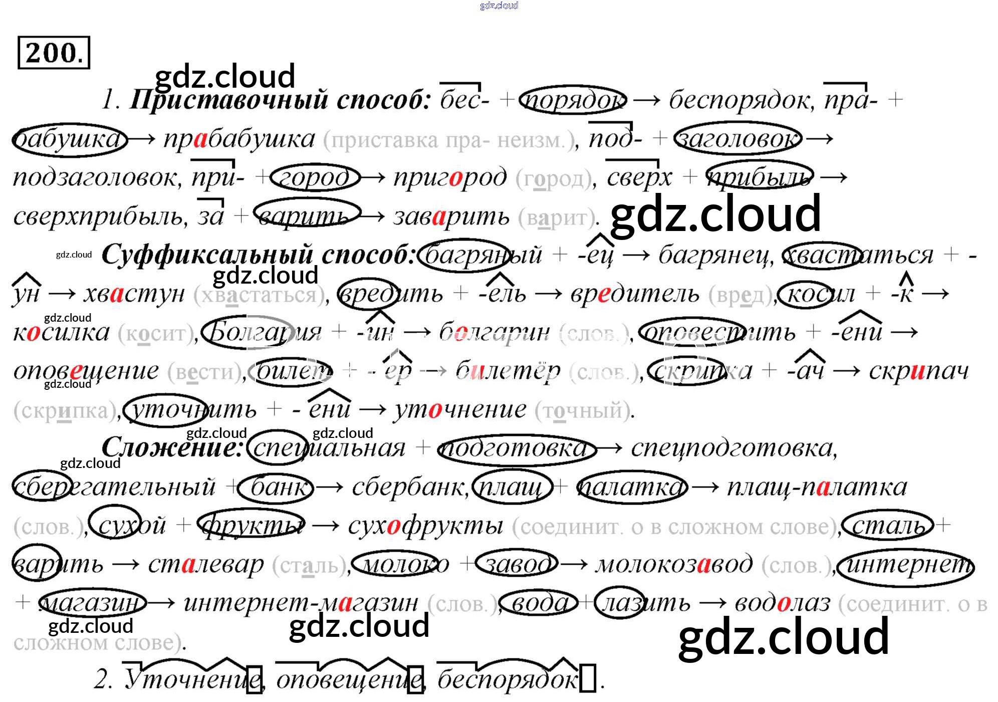 Ответ на задание 200 Учебник Русский язык за 6 (шестой) класс Львова, Львов 2013 Часть 1, 2 ФГОС онлайн и без номера телефона.