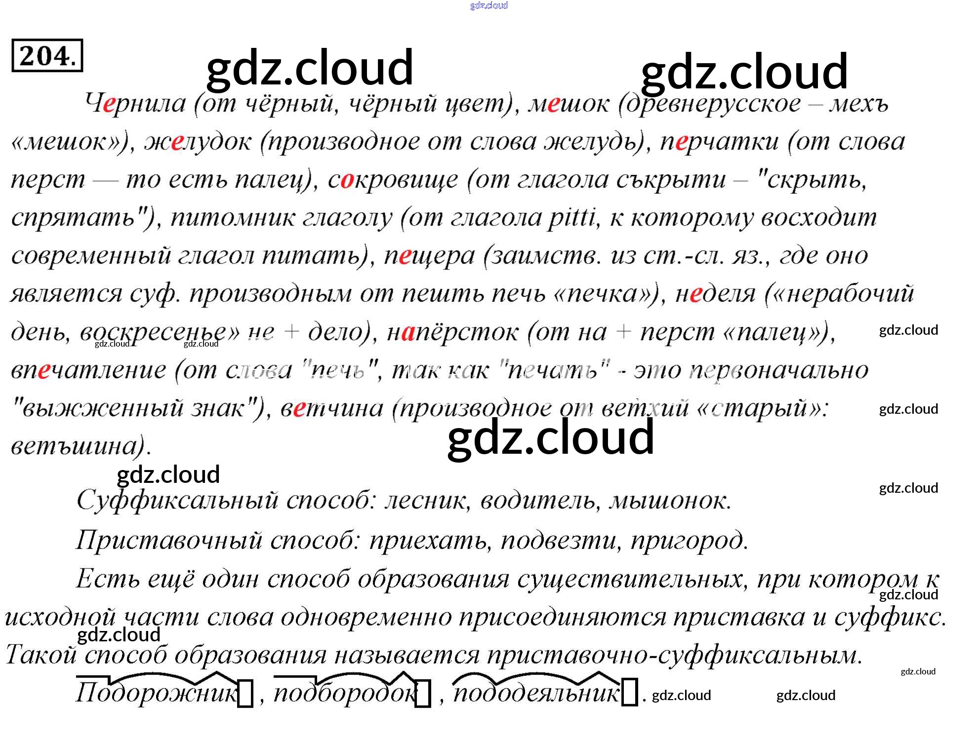 Ответ на задание 204 Учебник Русский язык за 6 (шестой) класс Львова, Львов 2013 Часть 1, 2 ФГОС онлайн и без номера телефона.