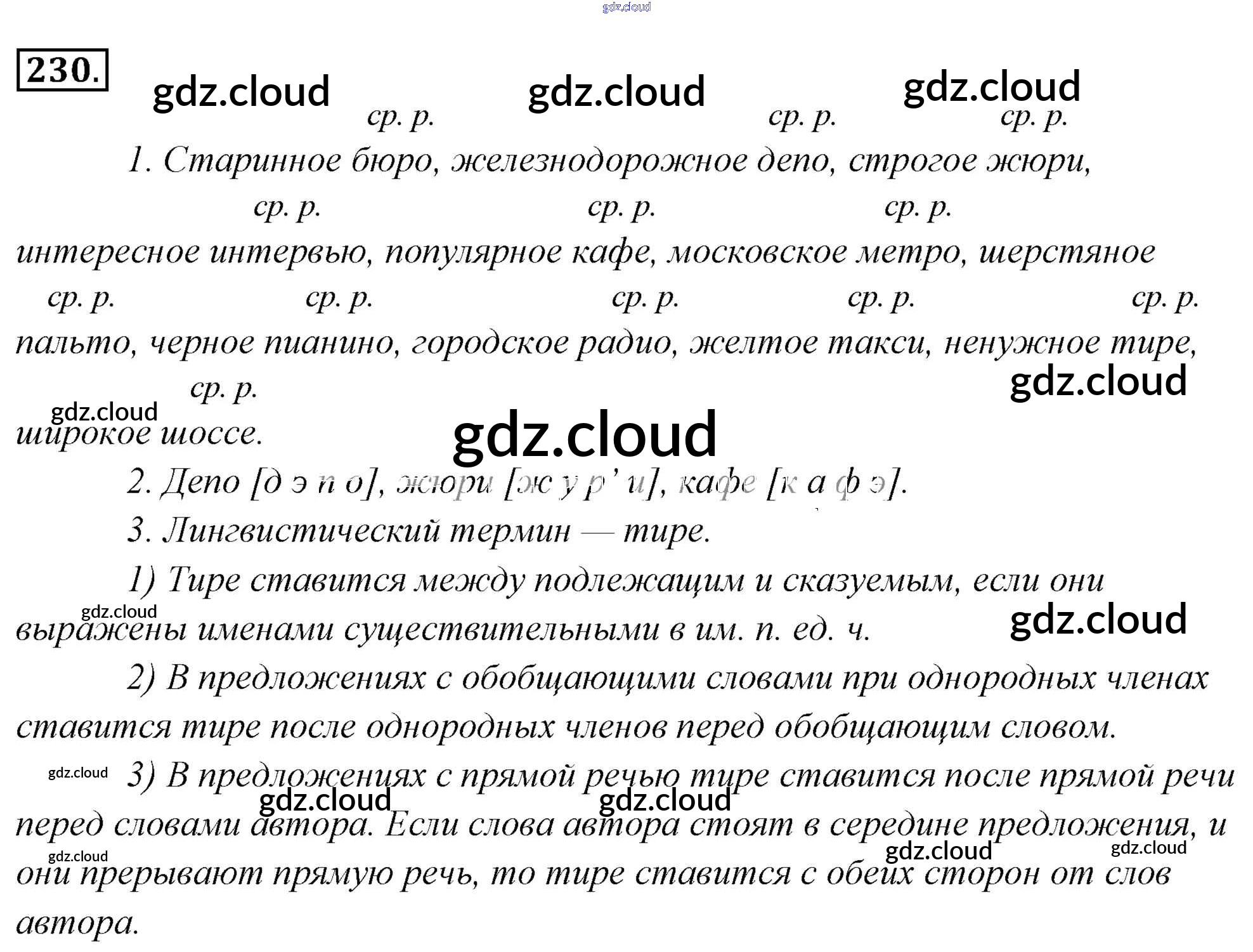 Ответ на задание 230 Учебник Русский язык за 6 (шестой) класс Львова, Львов 2013 Часть 1, 2 ФГОС онлайн и без номера телефона.