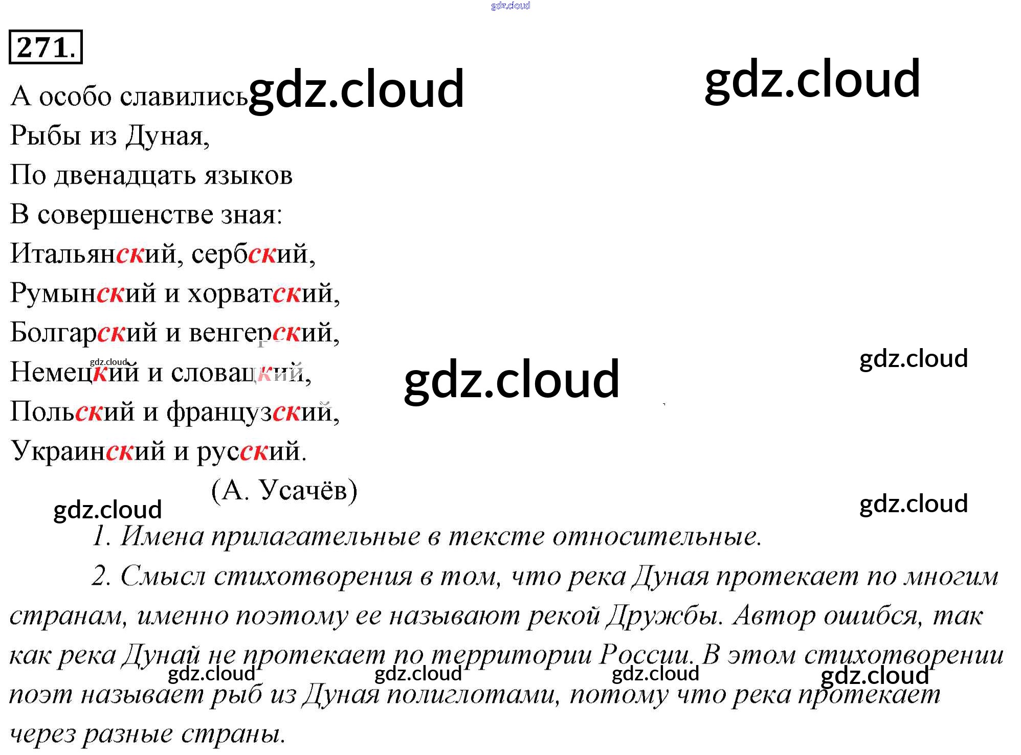 Ответ на задание 271 Учебник Русский язык за 6 (шестой) класс Львова, Львов 2013 Часть 1, 2 ФГОС онлайн и без номера телефона.