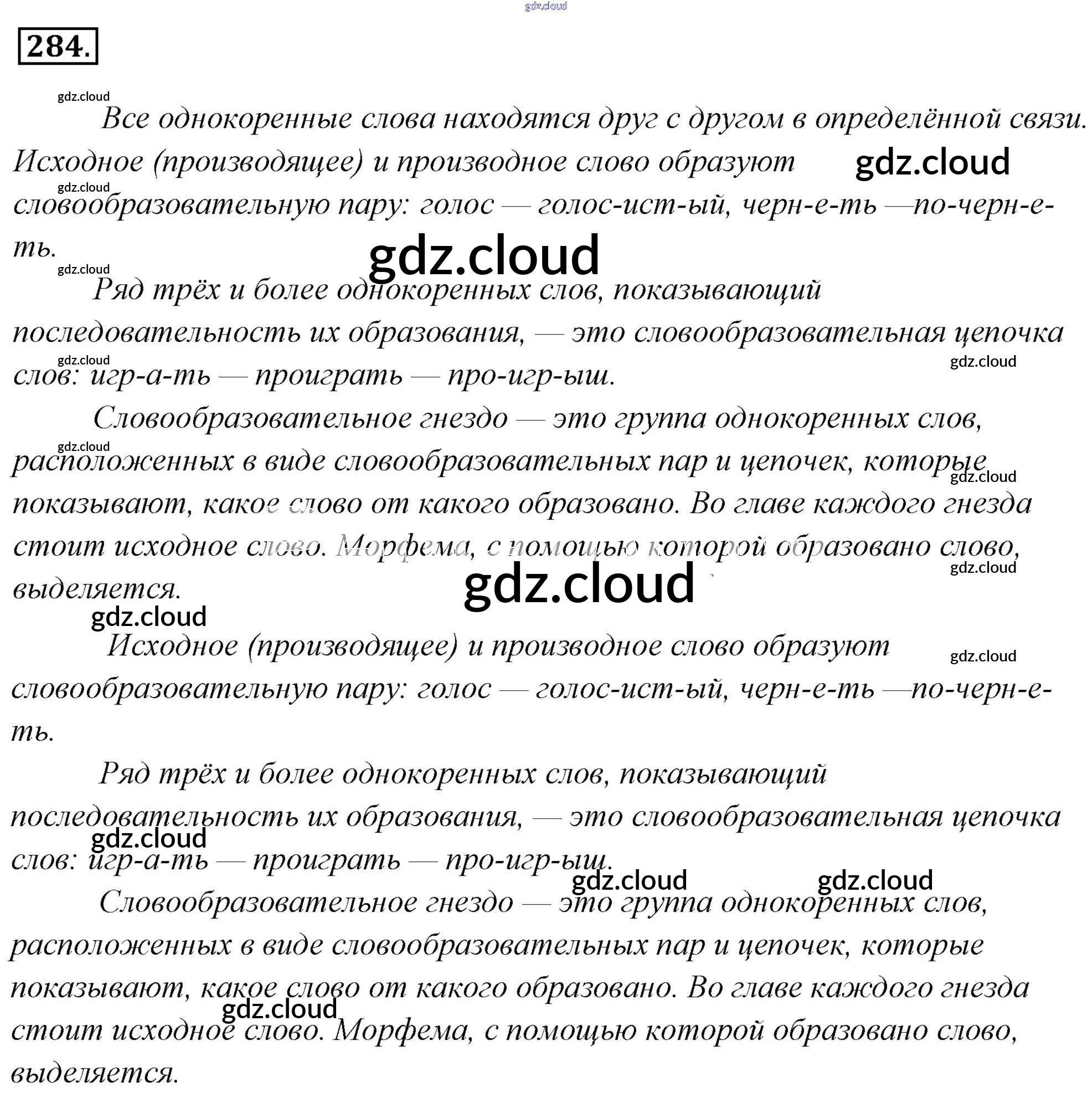 Ответ на задание 284 Учебник Русский язык за 6 (шестой) класс Львова, Львов 2013 Часть 1, 2 ФГОС онлайн и без номера телефона.