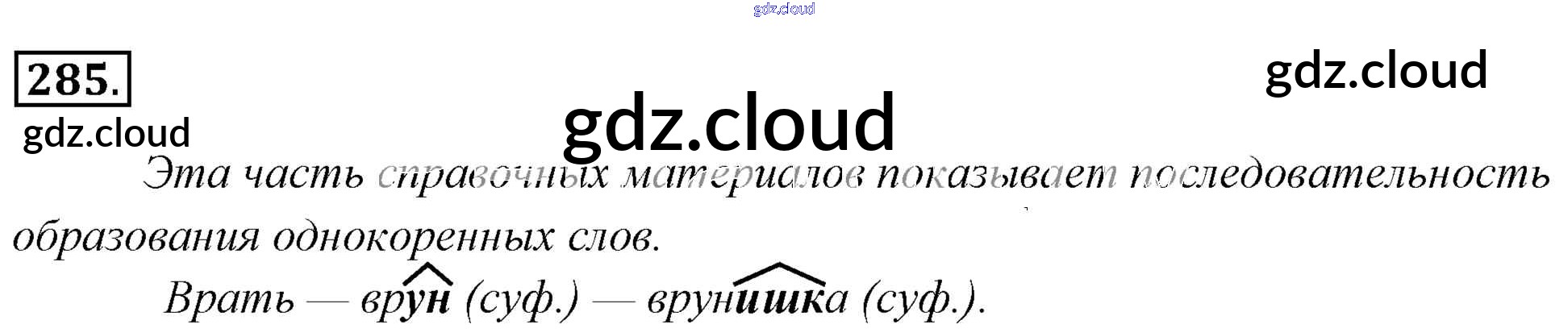 Ответ на задание 285 Учебник Русский язык за 6 (шестой) класс Львова, Львов 2013 Часть 1, 2 ФГОС онлайн и без номера телефона.