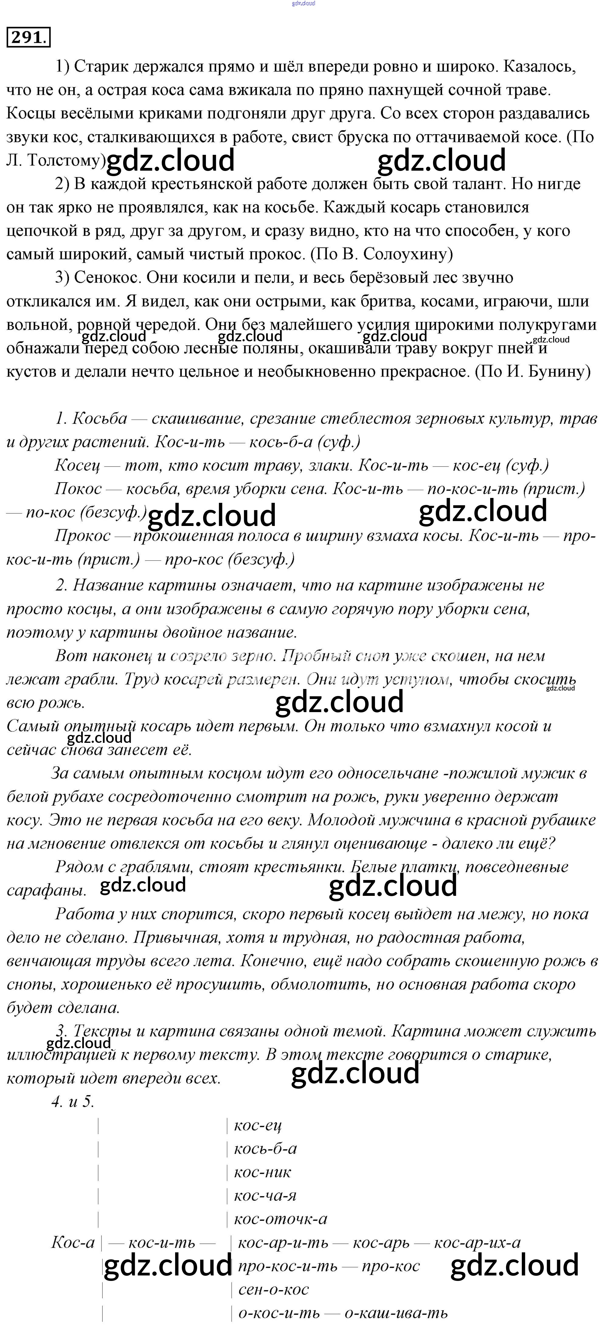 Ответ на задание 291 Учебник Русский язык за 6 (шестой) класс Львова, Львов 2013 Часть 1, 2 ФГОС онлайн и без номера телефона.
