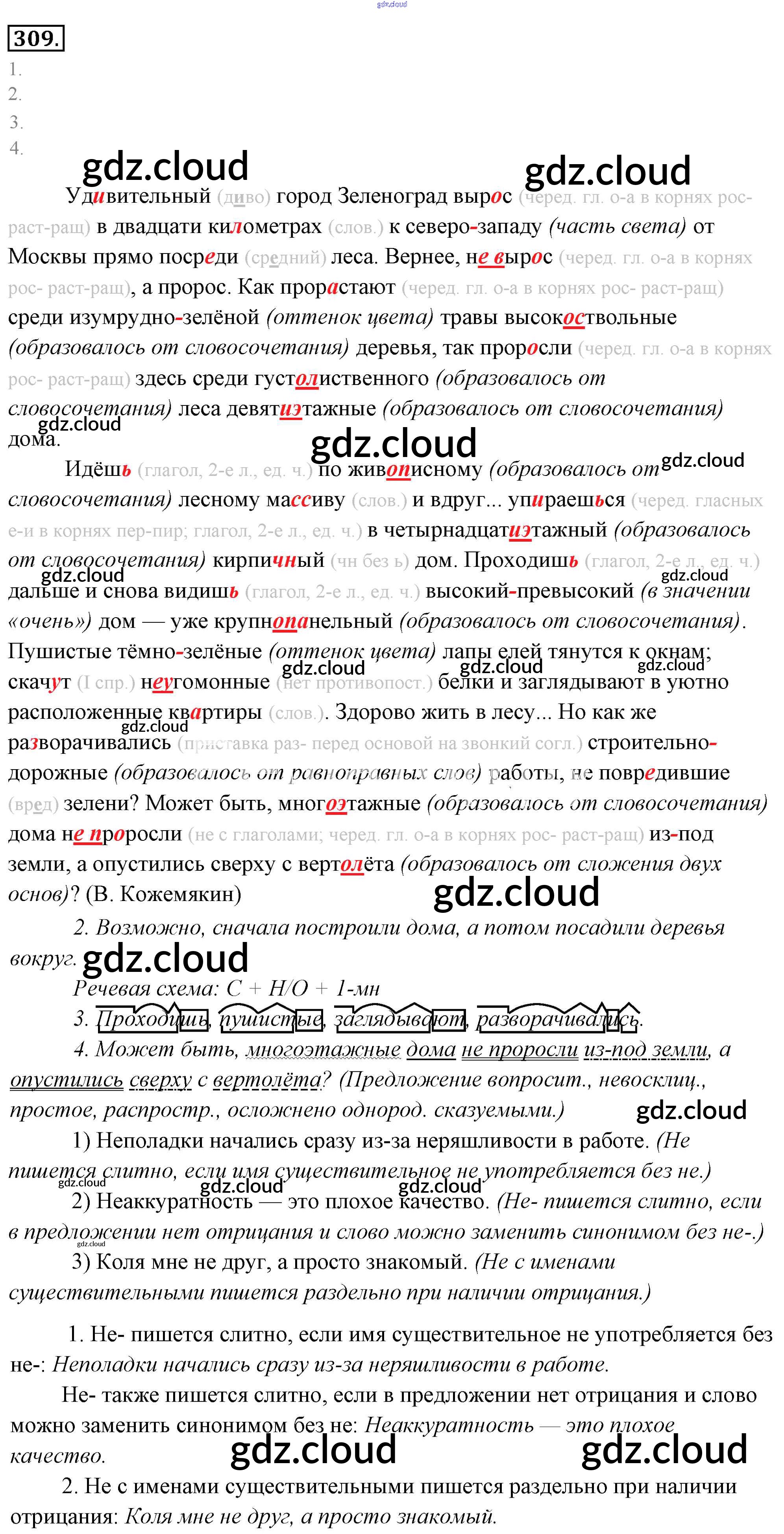 Ответ на задание 309 Учебник Русский язык за 6 (шестой) класс Львова, Львов 2013 Часть 1, 2 ФГОС онлайн и без номера телефона.