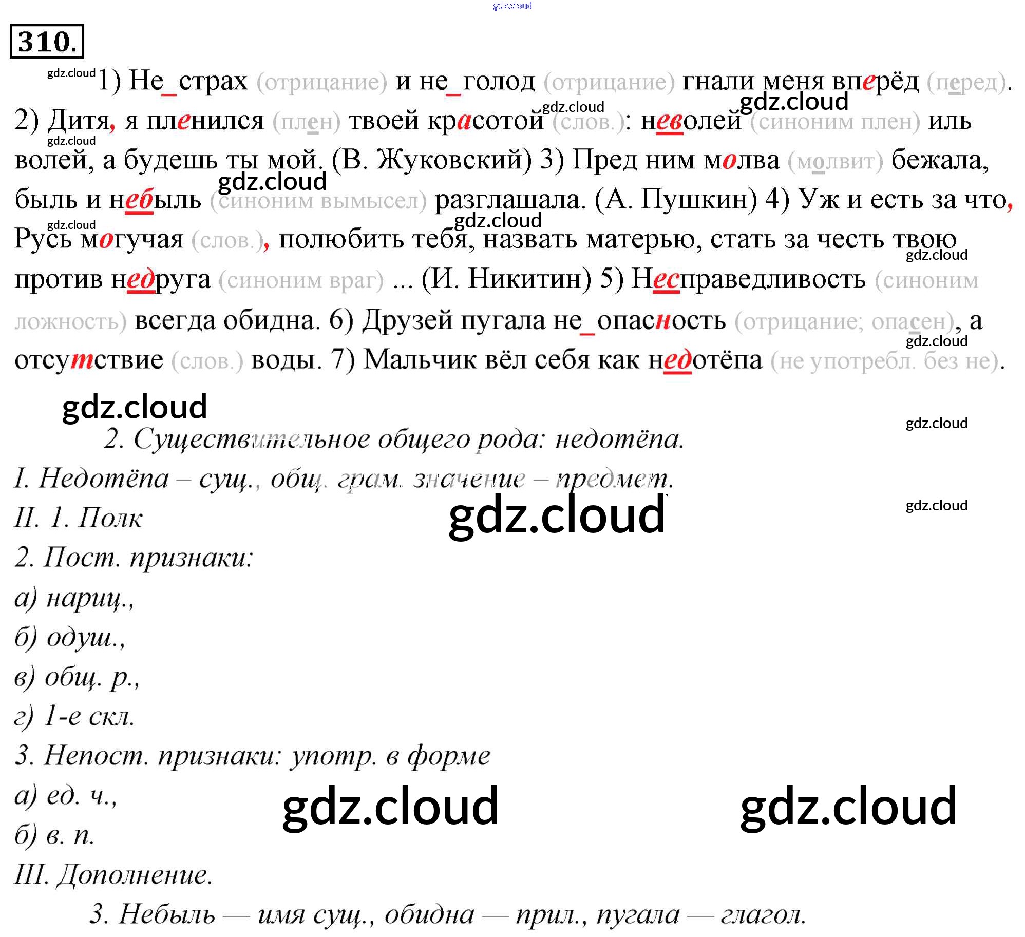 Ответ на задание 310 Учебник Русский язык за 6 (шестой) класс Львова, Львов 2013 Часть 1, 2 ФГОС онлайн и без номера телефона.