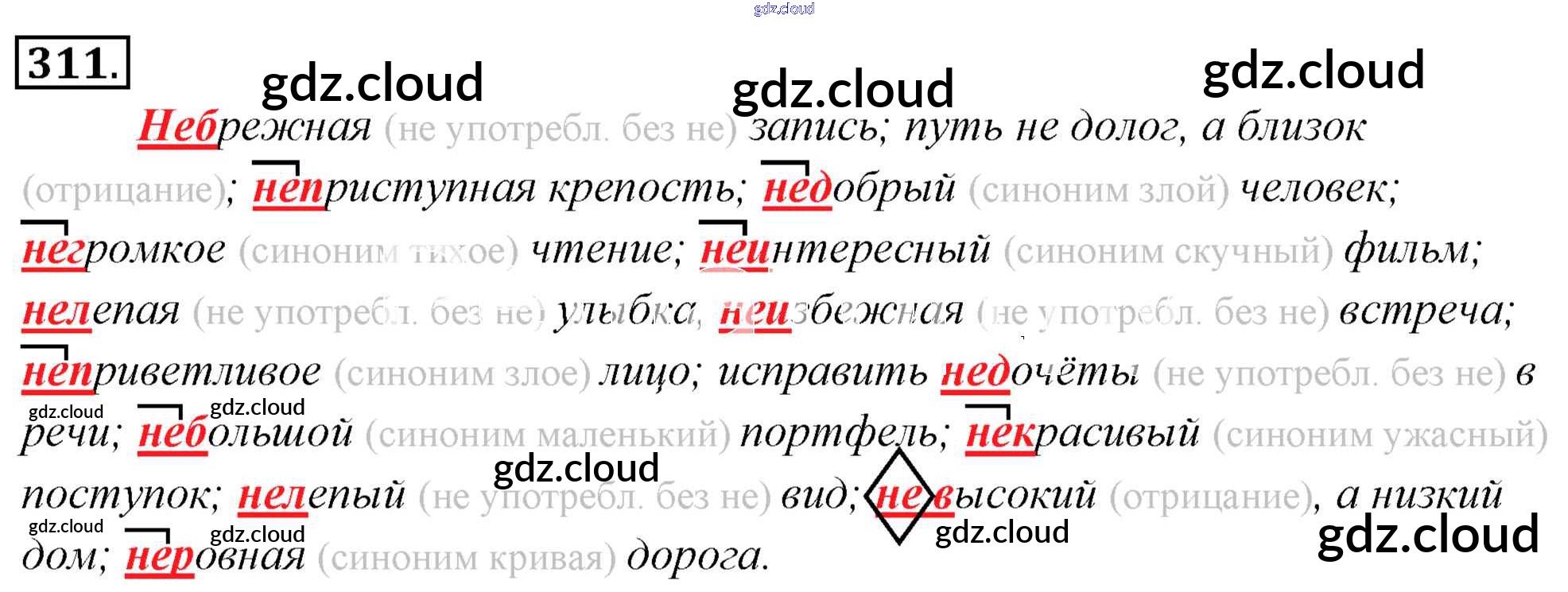 Ответ на задание 311 Учебник Русский язык за 6 (шестой) класс Львова, Львов 2013 Часть 1, 2 ФГОС онлайн и без номера телефона.