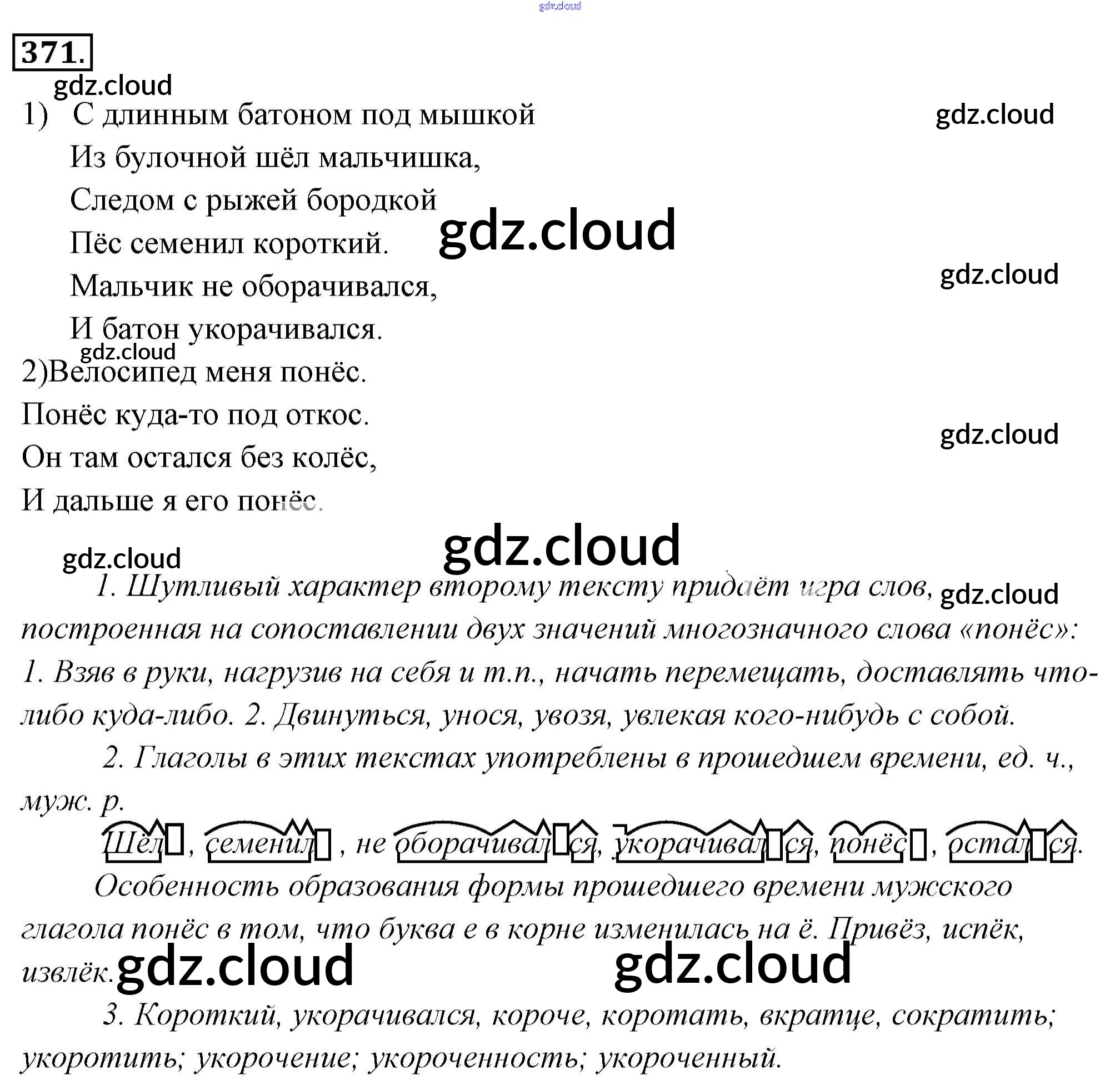 Ответ на задание 371 Учебник Русский язык за 6 (шестой) класс Львова, Львов 2013 Часть 1, 2 ФГОС онлайн и без номера телефона.