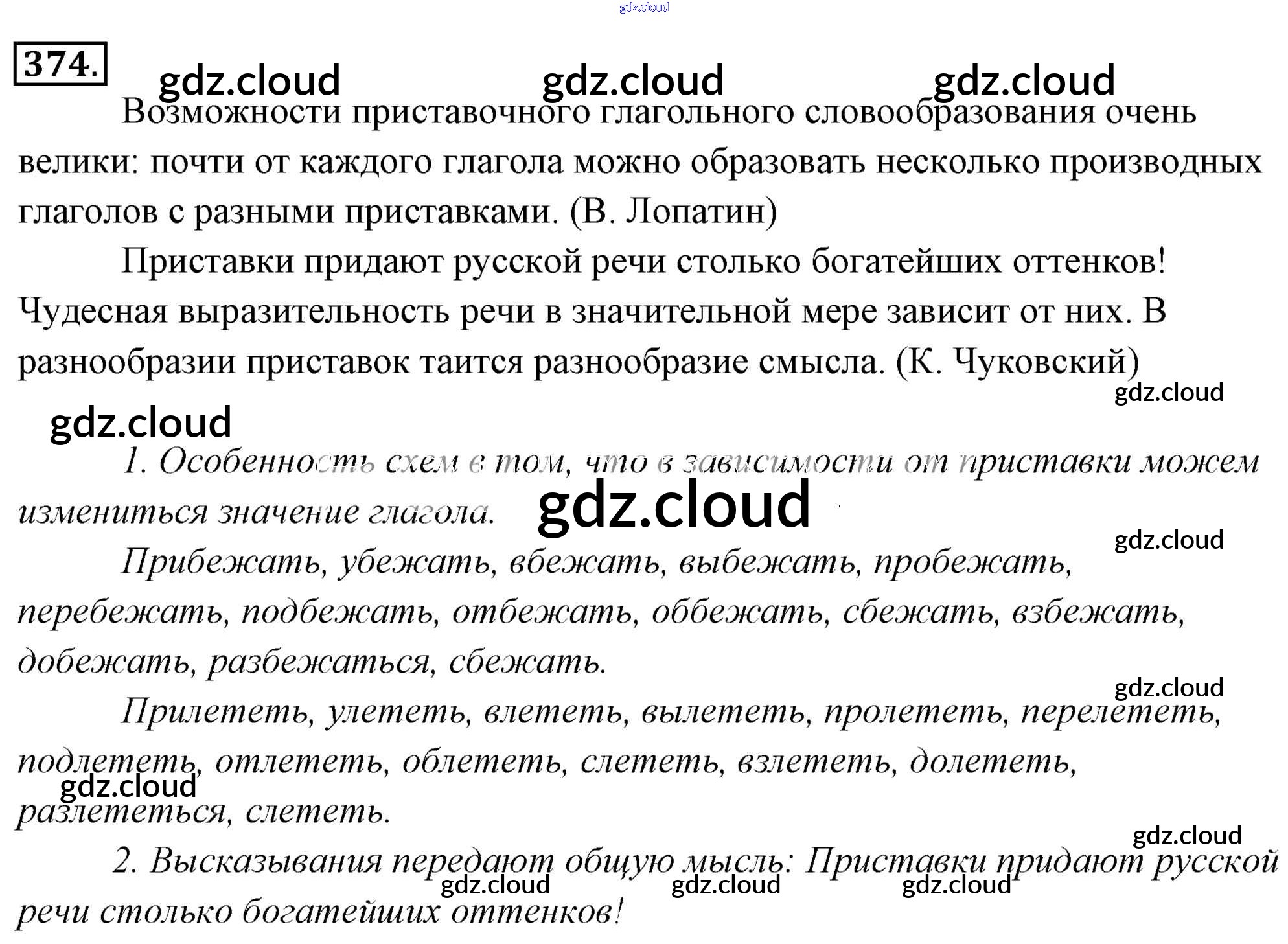 Ответ на задание 374 Учебник Русский язык за 6 (шестой) класс Львова, Львов 2013 Часть 1, 2 ФГОС онлайн и без номера телефона.
