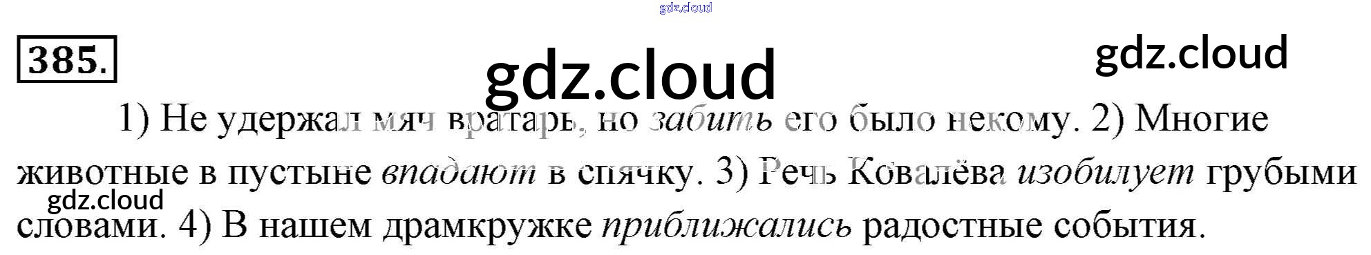 Ответ на задание 385 Учебник Русский язык за 6 (шестой) класс Львова, Львов 2013 Часть 1, 2 ФГОС онлайн и без номера телефона.
