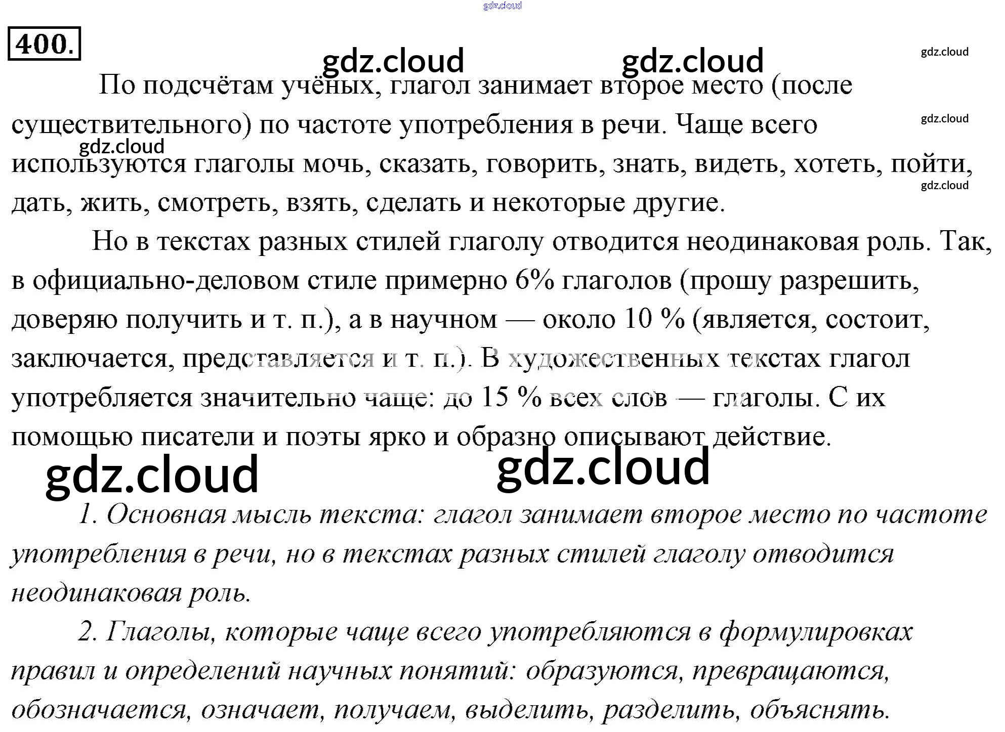 Ответ на задание 400 Учебник Русский язык за 6 (шестой) класс Львова, Львов 2013 Часть 1, 2 ФГОС онлайн и без номера телефона.