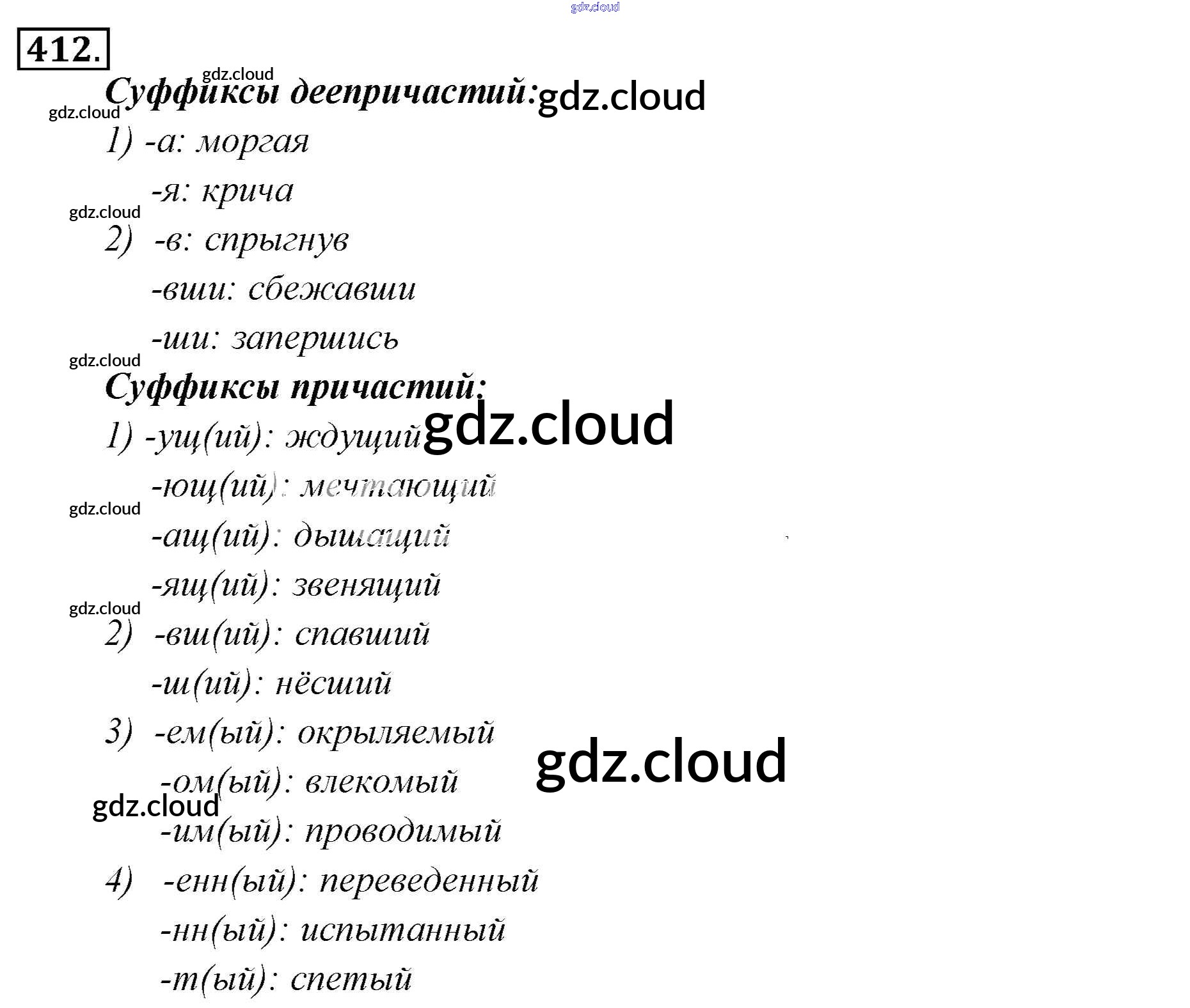 Ответ на задание 412 Учебник Русский язык за 6 (шестой) класс Львова, Львов 2013 Часть 1, 2 ФГОС онлайн и без номера телефона.