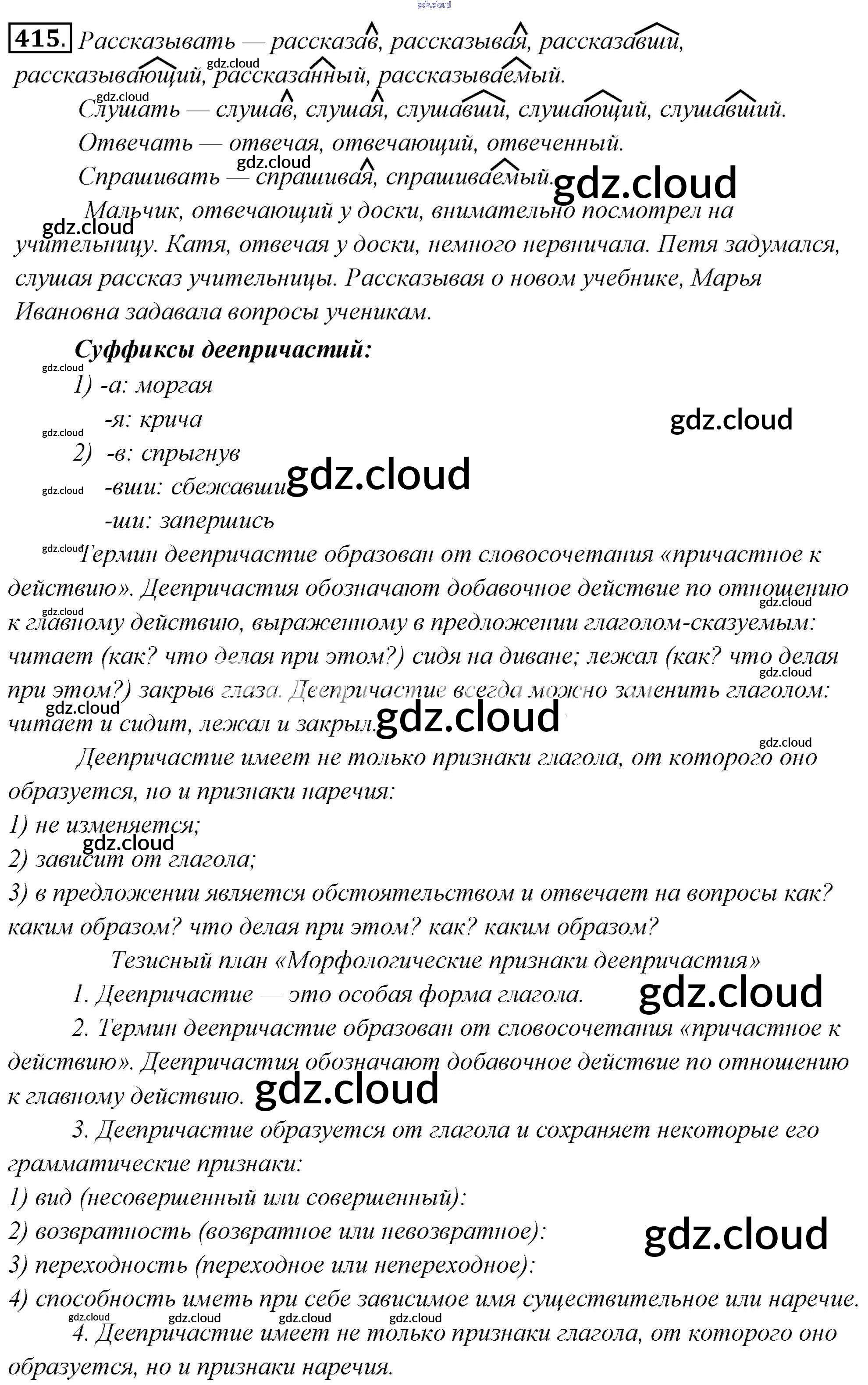 Ответ на задание 415 Учебник Русский язык за 6 (шестой) класс Львова, Львов 2013 Часть 1, 2 ФГОС онлайн и без номера телефона.