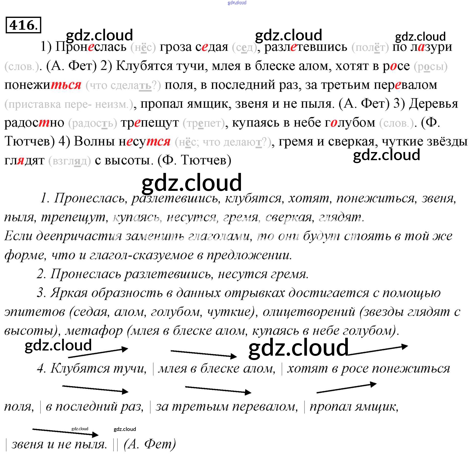 Ответ на задание 416 Учебник Русский язык за 6 (шестой) класс Львова, Львов 2013 Часть 1, 2 ФГОС онлайн и без номера телефона.