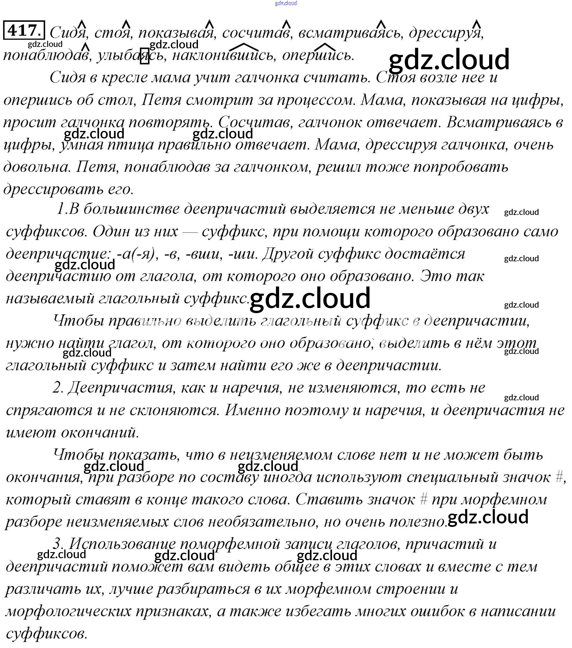 Ответ на задание 417 Учебник Русский язык за 6 (шестой) класс Львова, Львов 2013 Часть 1, 2 ФГОС онлайн и без номера телефона.