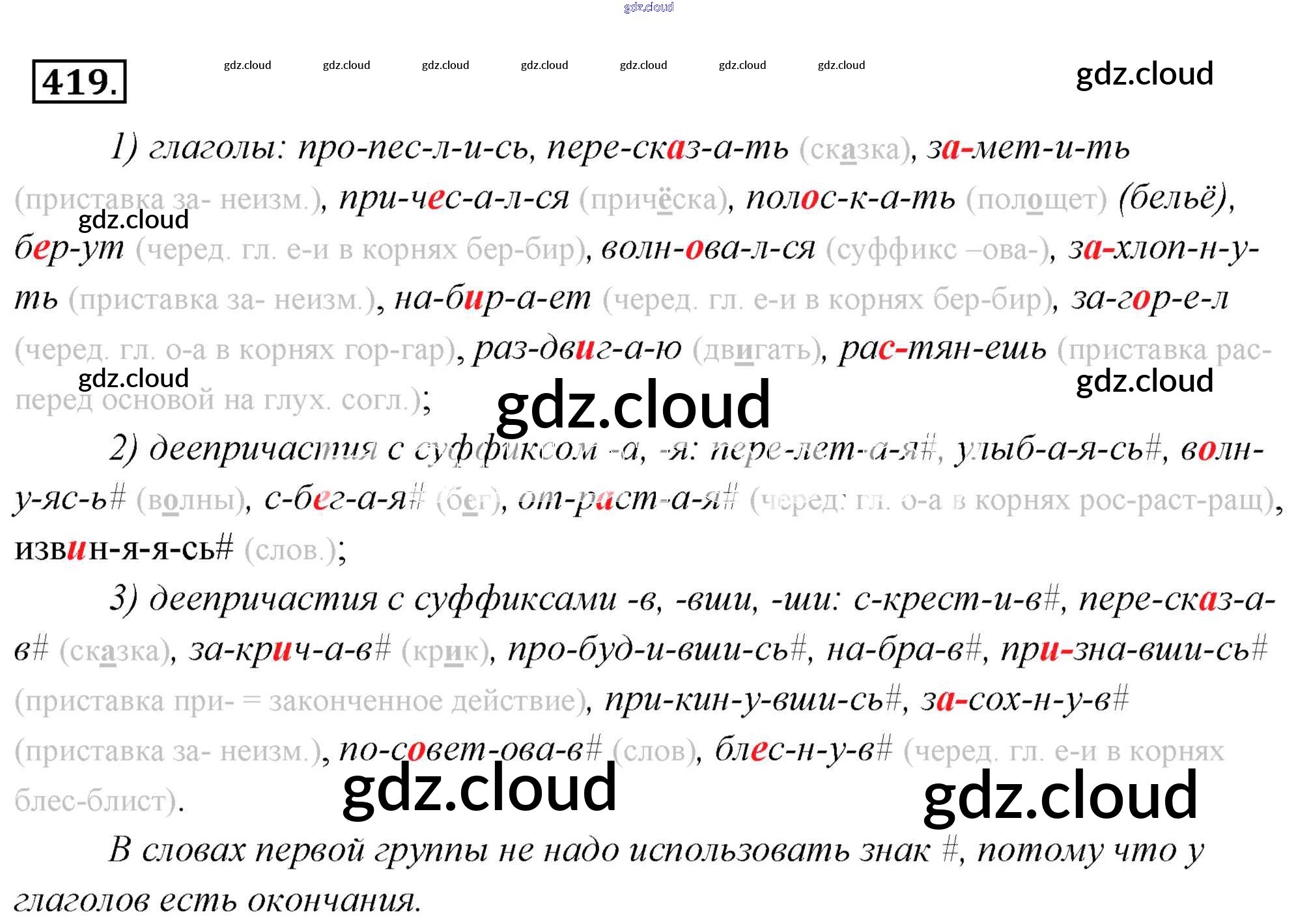 Ответ на задание 419 Учебник Русский язык за 6 (шестой) класс Львова, Львов 2013 Часть 1, 2 ФГОС онлайн и без номера телефона.