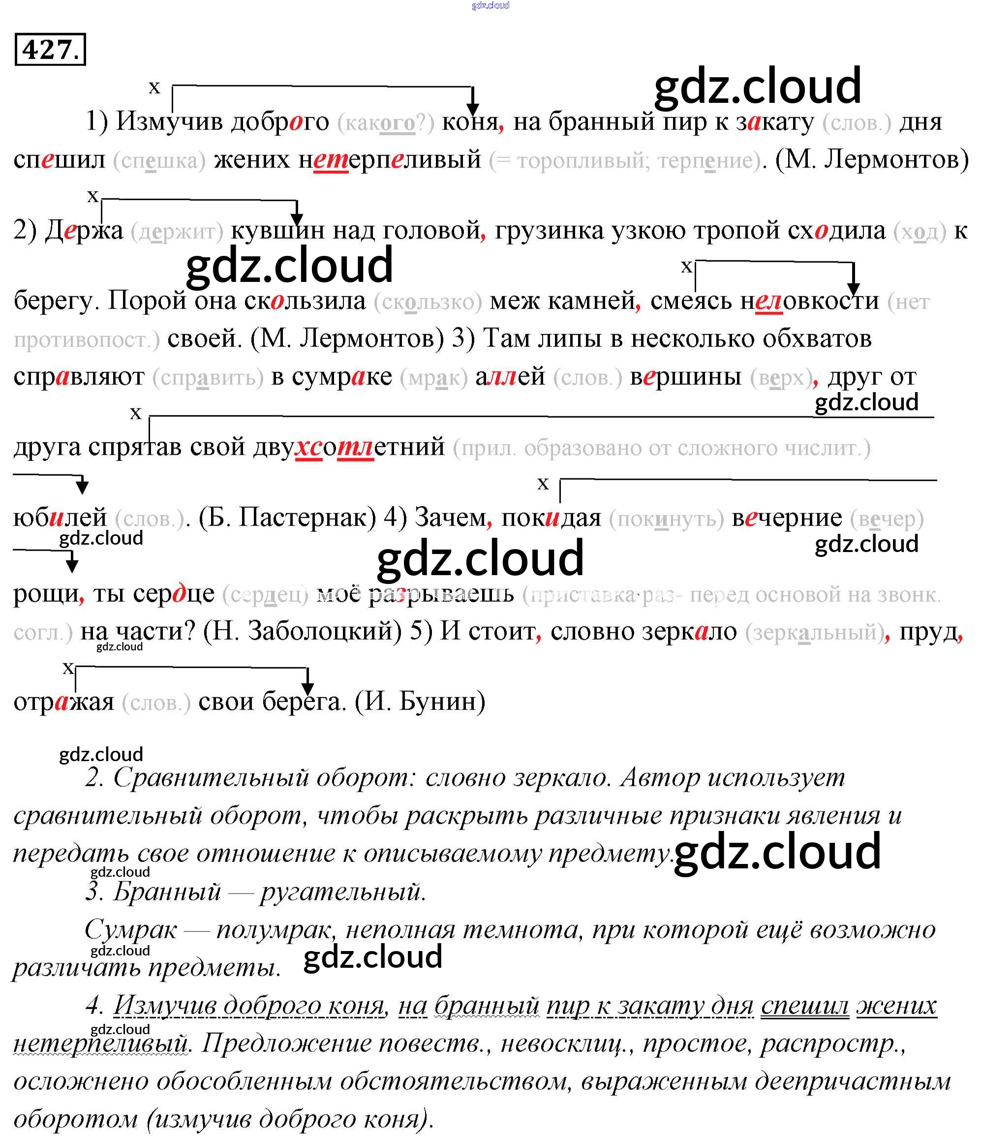 Ответ на задание 427 Учебник Русский язык за 6 (шестой) класс Львова, Львов 2013 Часть 1, 2 ФГОС онлайн и без номера телефона.