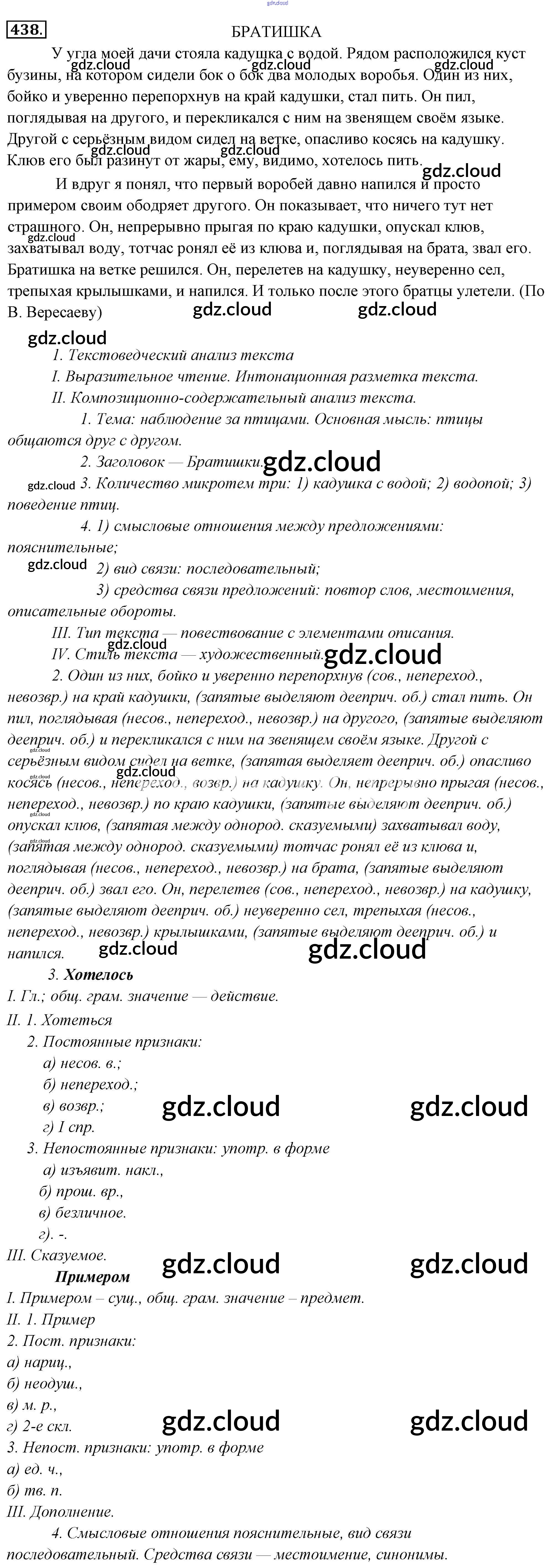 Ответ на задание 438 Учебник Русский язык за 6 (шестой) класс Львова, Львов 2013 Часть 1, 2 ФГОС онлайн и без номера телефона.