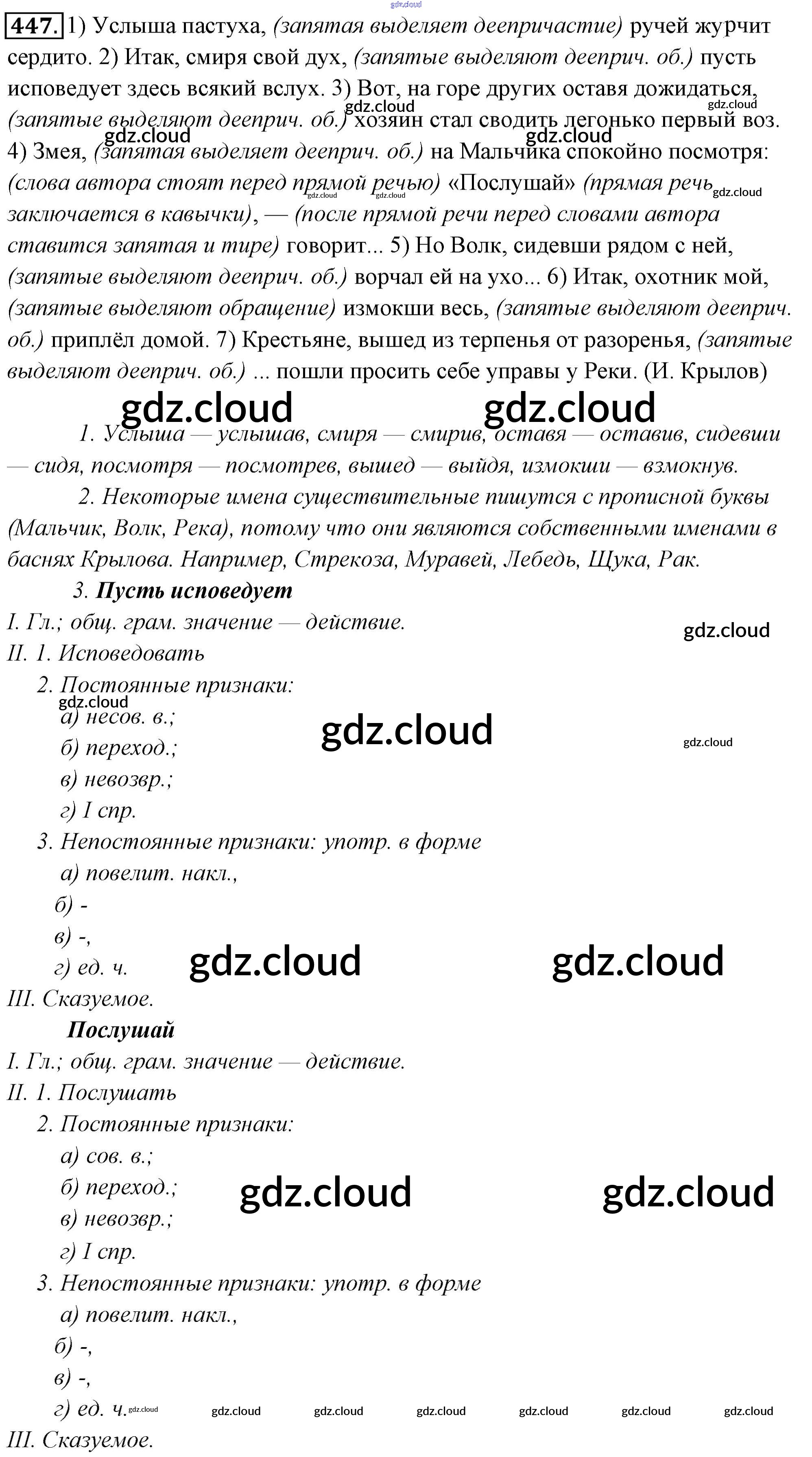 Ответ на задание 447 Учебник Русский язык за 6 (шестой) класс Львова, Львов 2013 Часть 1, 2 ФГОС онлайн и без номера телефона.
