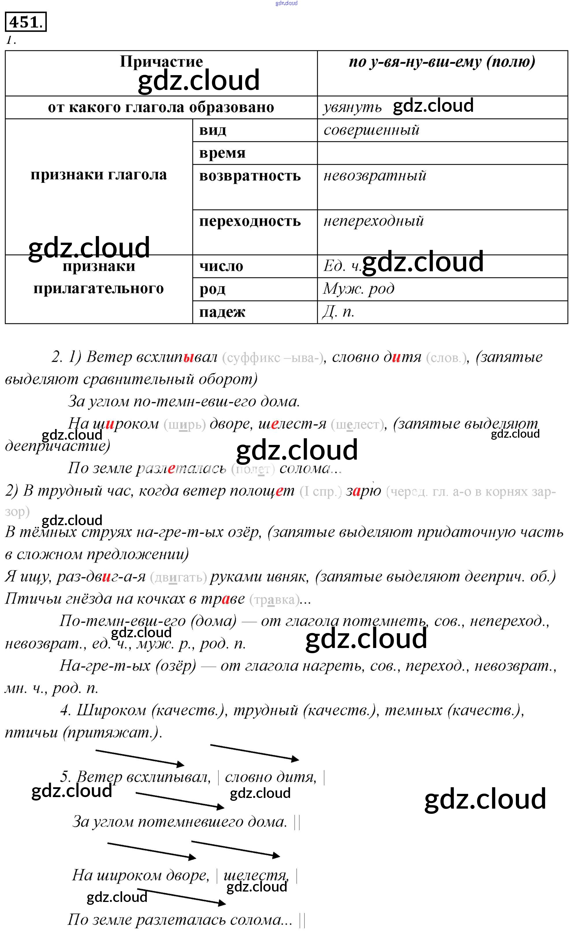 Ответ на задание 451 Учебник Русский язык за 6 (шестой) класс Львова, Львов 2013 Часть 1, 2 ФГОС онлайн и без номера телефона.