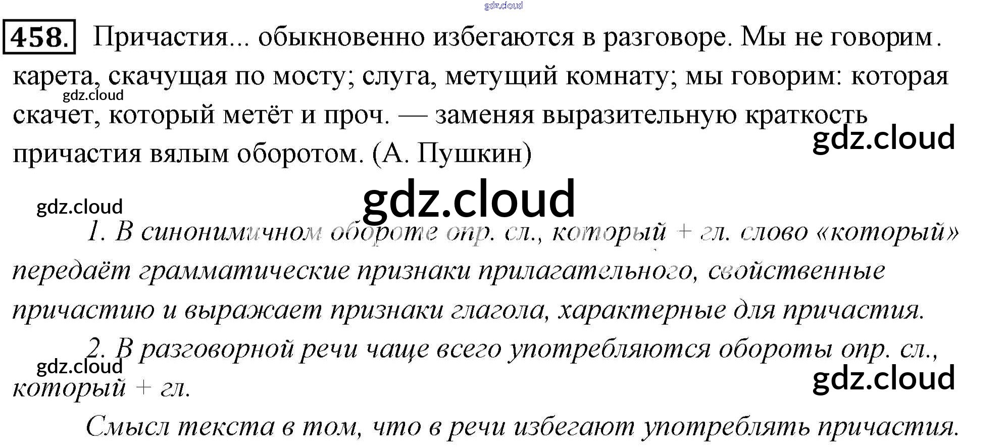 Ответ на задание 458 Учебник Русский язык за 6 (шестой) класс Львова, Львов 2013 Часть 1, 2 ФГОС онлайн и без номера телефона.