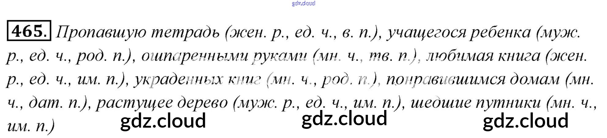 Ответ на задание 465 Учебник Русский язык за 6 (шестой) класс Львова, Львов 2013 Часть 1, 2 ФГОС онлайн и без номера телефона.