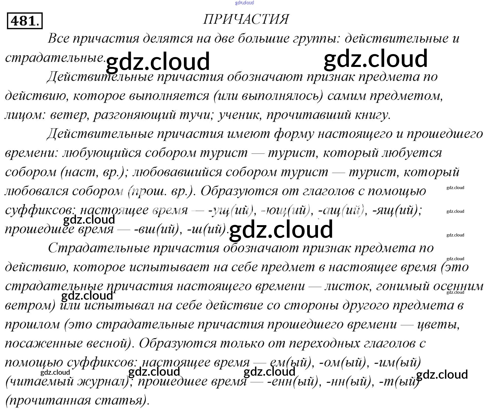 Ответ на задание 481 Учебник Русский язык за 6 (шестой) класс Львова, Львов 2013 Часть 1, 2 ФГОС онлайн и без номера телефона.
