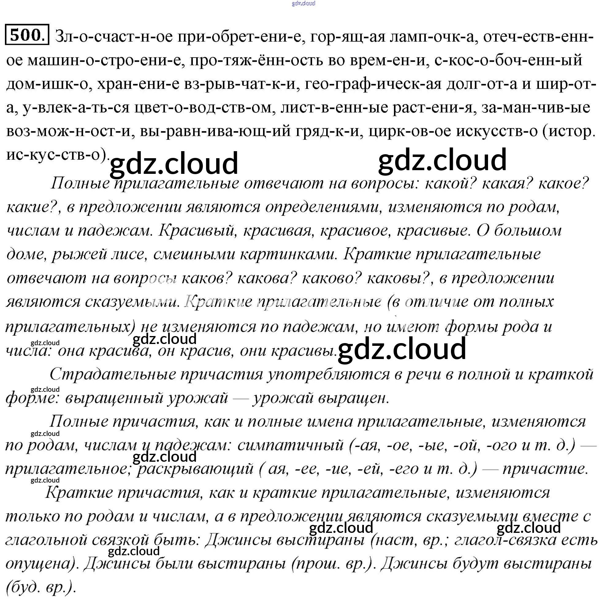 Ответ на задание 500 Учебник Русский язык за 6 (шестой) класс Львова, Львов 2013 Часть 1, 2 ФГОС онлайн и без номера телефона.