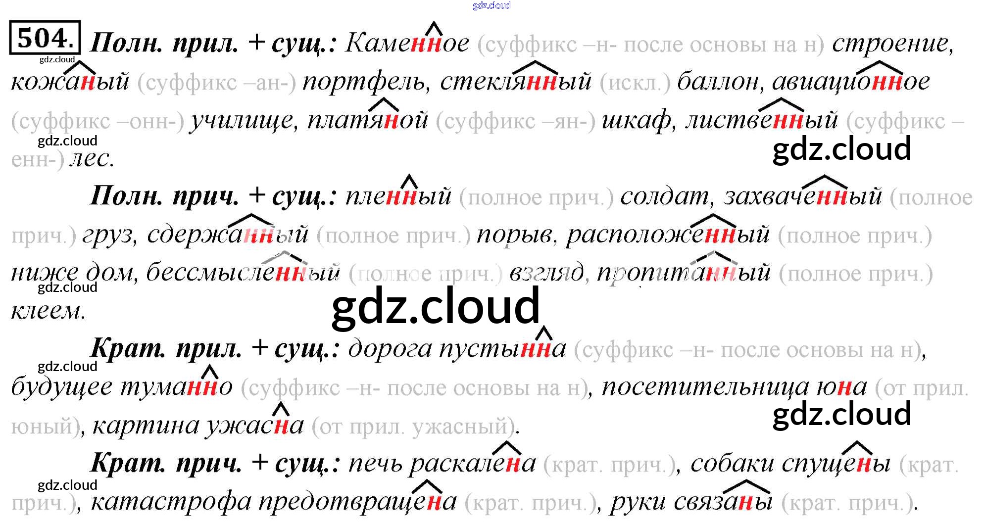 Ответ на задание 504 Учебник Русский язык за 6 (шестой) класс Львова, Львов 2013 Часть 1, 2 ФГОС онлайн и без номера телефона.