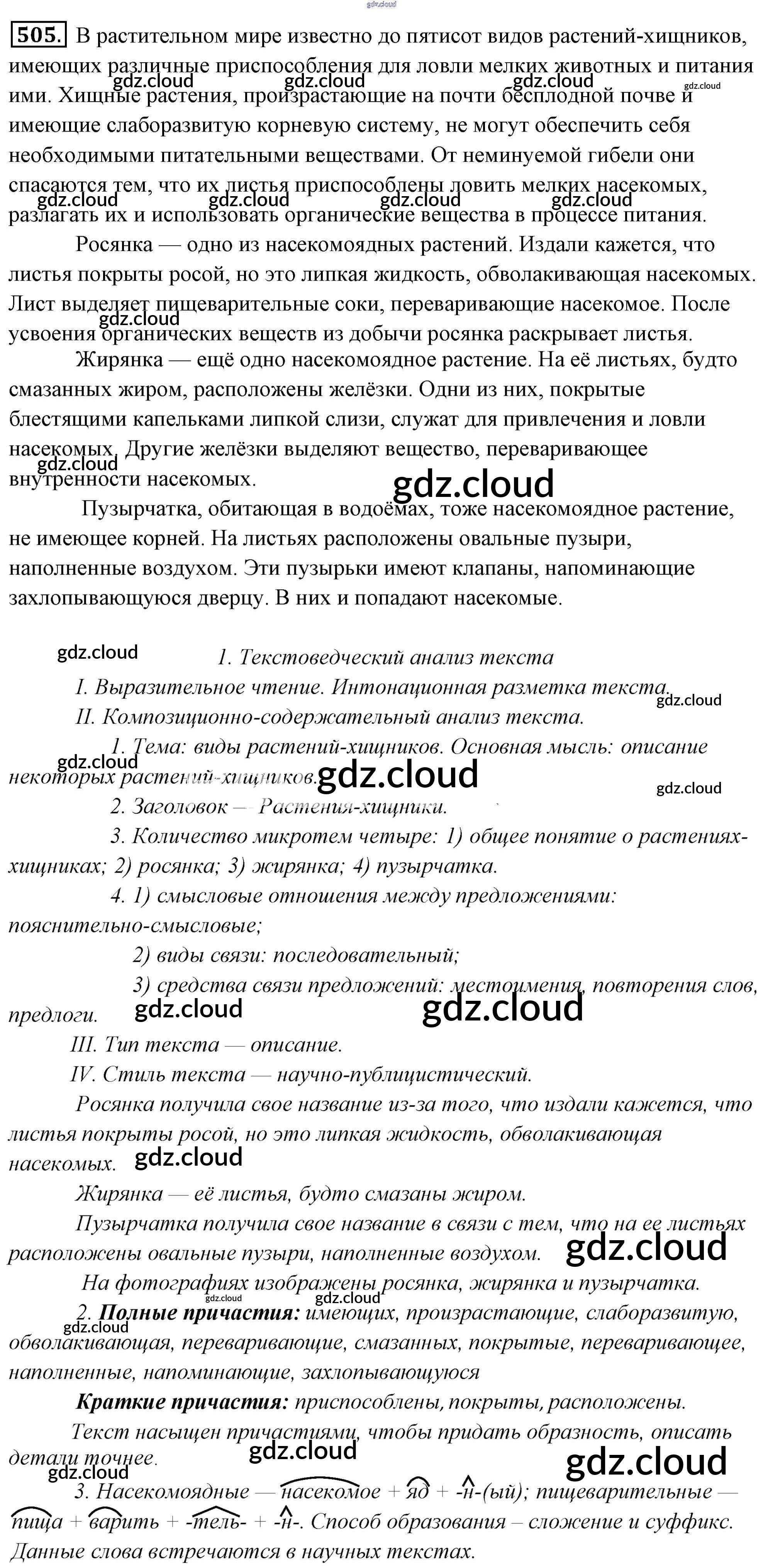 Ответ на задание 505 Учебник Русский язык за 6 (шестой) класс Львова, Львов 2013 Часть 1, 2 ФГОС онлайн и без номера телефона.