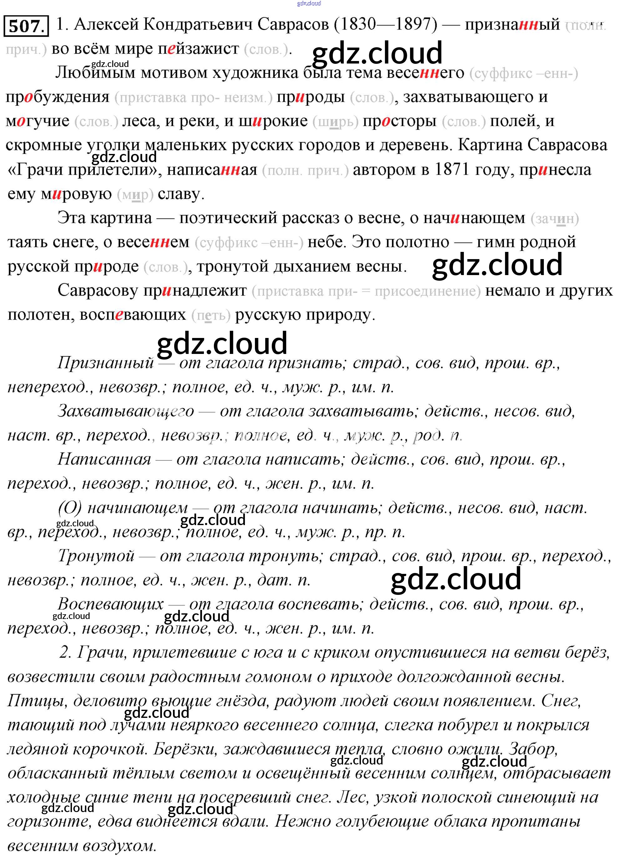 Ответ на задание 507 Учебник Русский язык за 6 (шестой) класс Львова, Львов 2013 Часть 1, 2 ФГОС онлайн и без номера телефона.