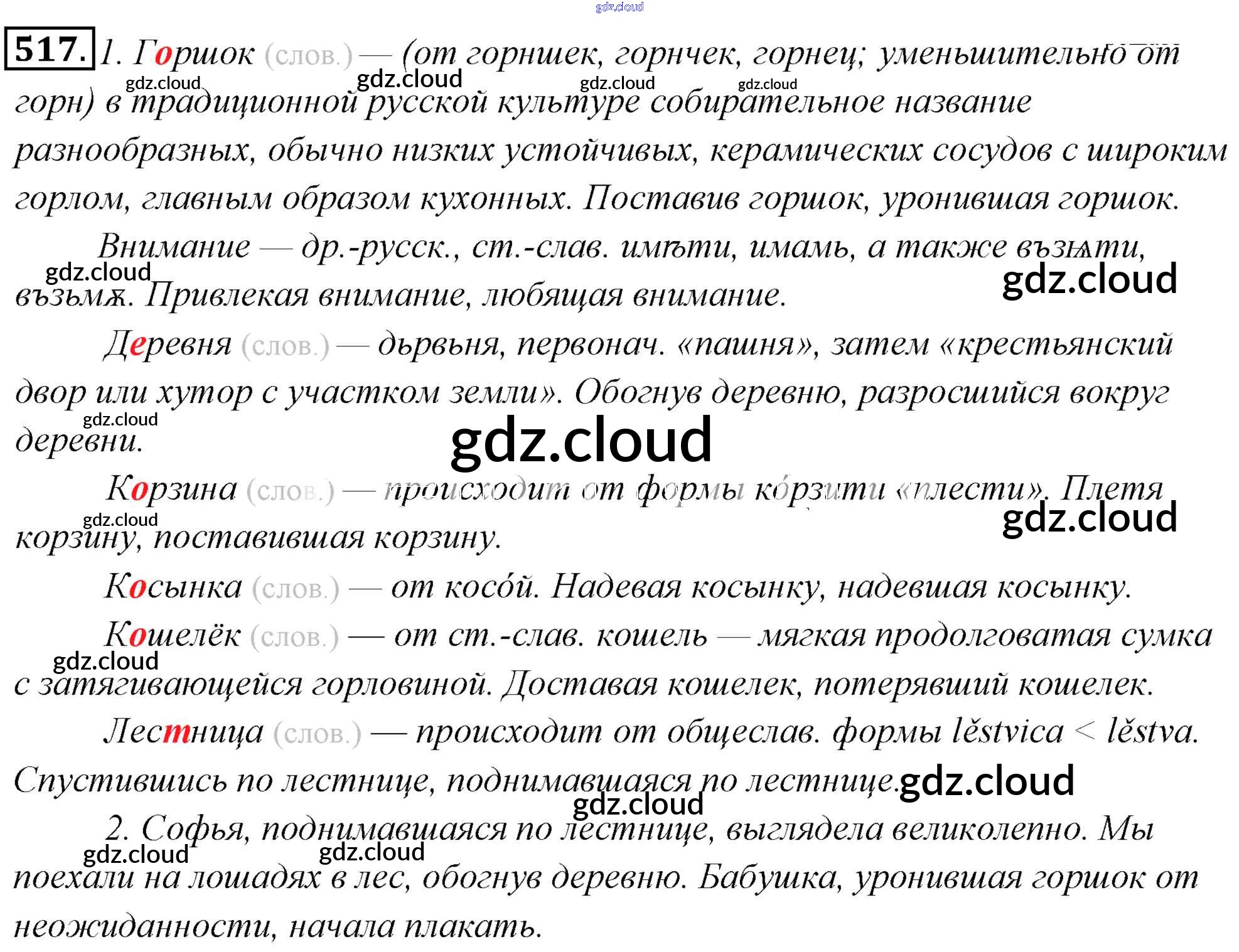 Ответ на задание 517 Учебник Русский язык за 6 (шестой) класс Львова, Львов 2013 Часть 1, 2 ФГОС онлайн и без номера телефона.