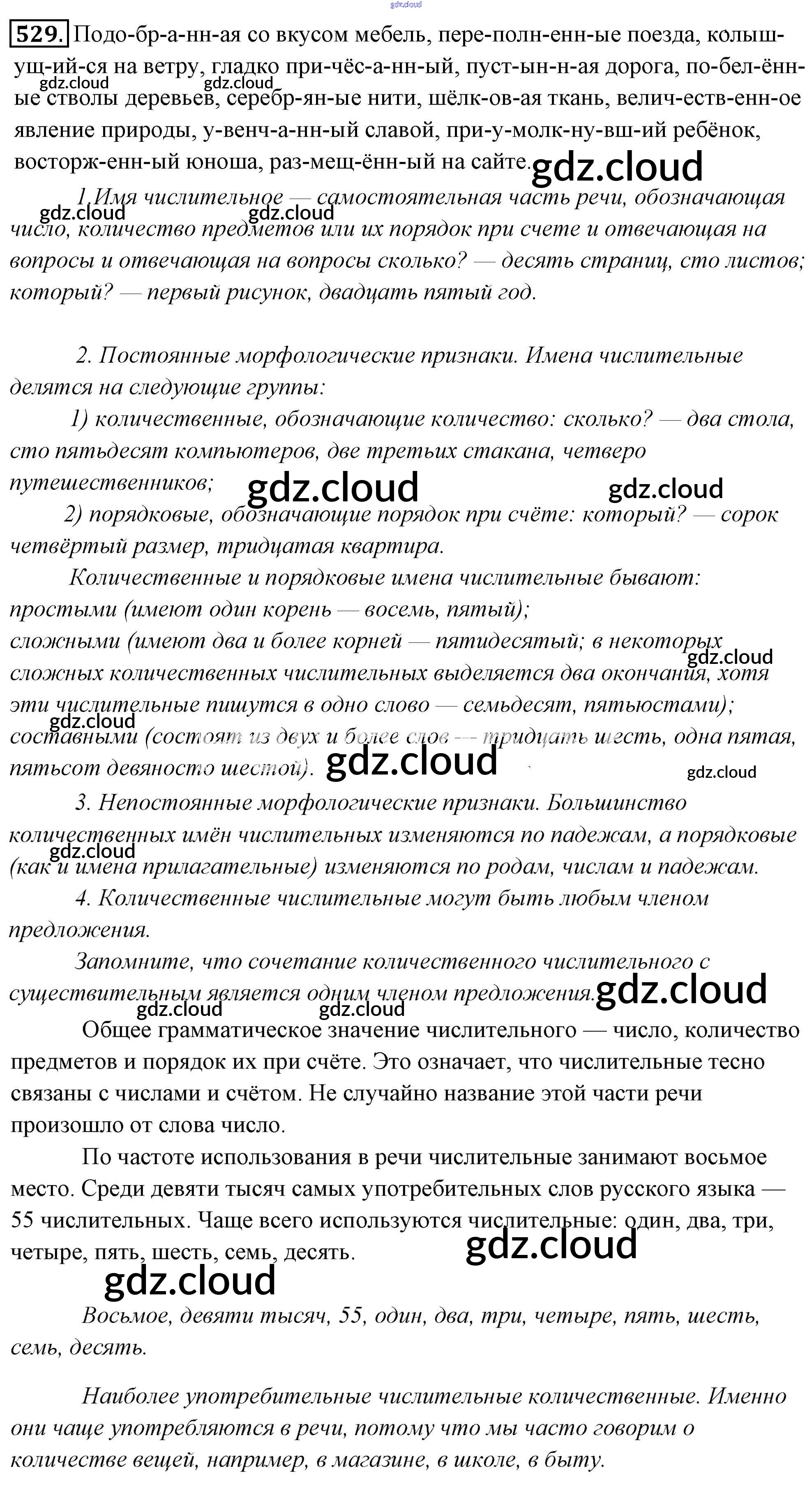 Ответ на задание 529 Учебник Русский язык за 6 (шестой) класс Львова, Львов 2013 Часть 1, 2 ФГОС онлайн и без номера телефона.