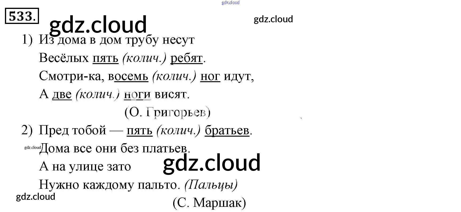 Ответ на задание 533 Учебник Русский язык за 6 (шестой) класс Львова, Львов 2013 Часть 1, 2 ФГОС онлайн и без номера телефона.