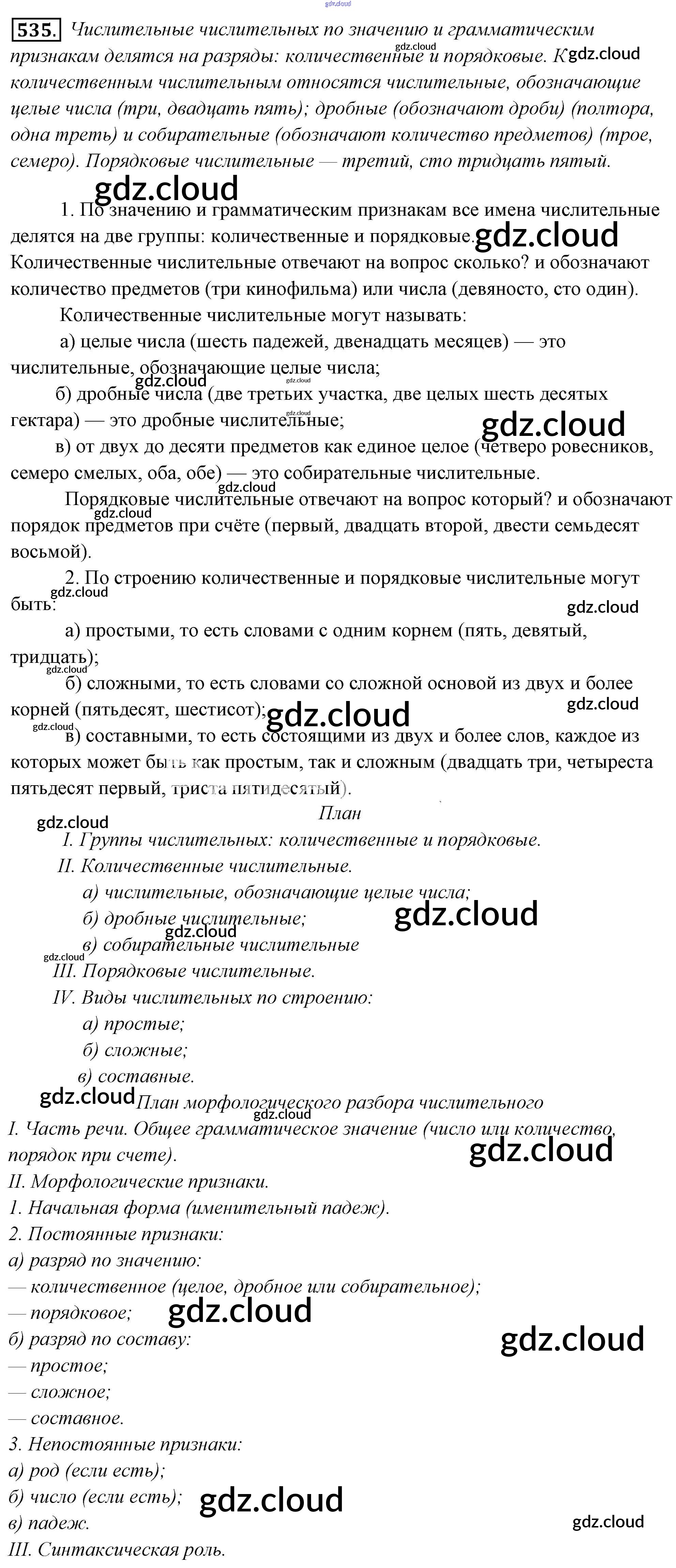 Ответ на задание 535 Учебник Русский язык за 6 (шестой) класс Львова, Львов 2013 Часть 1, 2 ФГОС онлайн и без номера телефона.