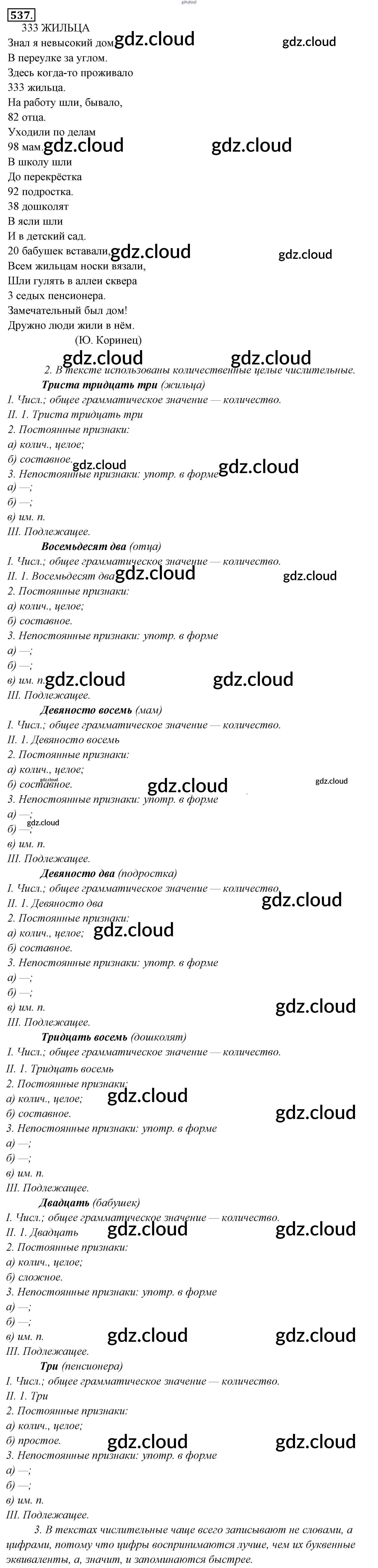 Ответ на задание 537 Учебник Русский язык за 6 (шестой) класс Львова, Львов 2013 Часть 1, 2 ФГОС онлайн и без номера телефона.