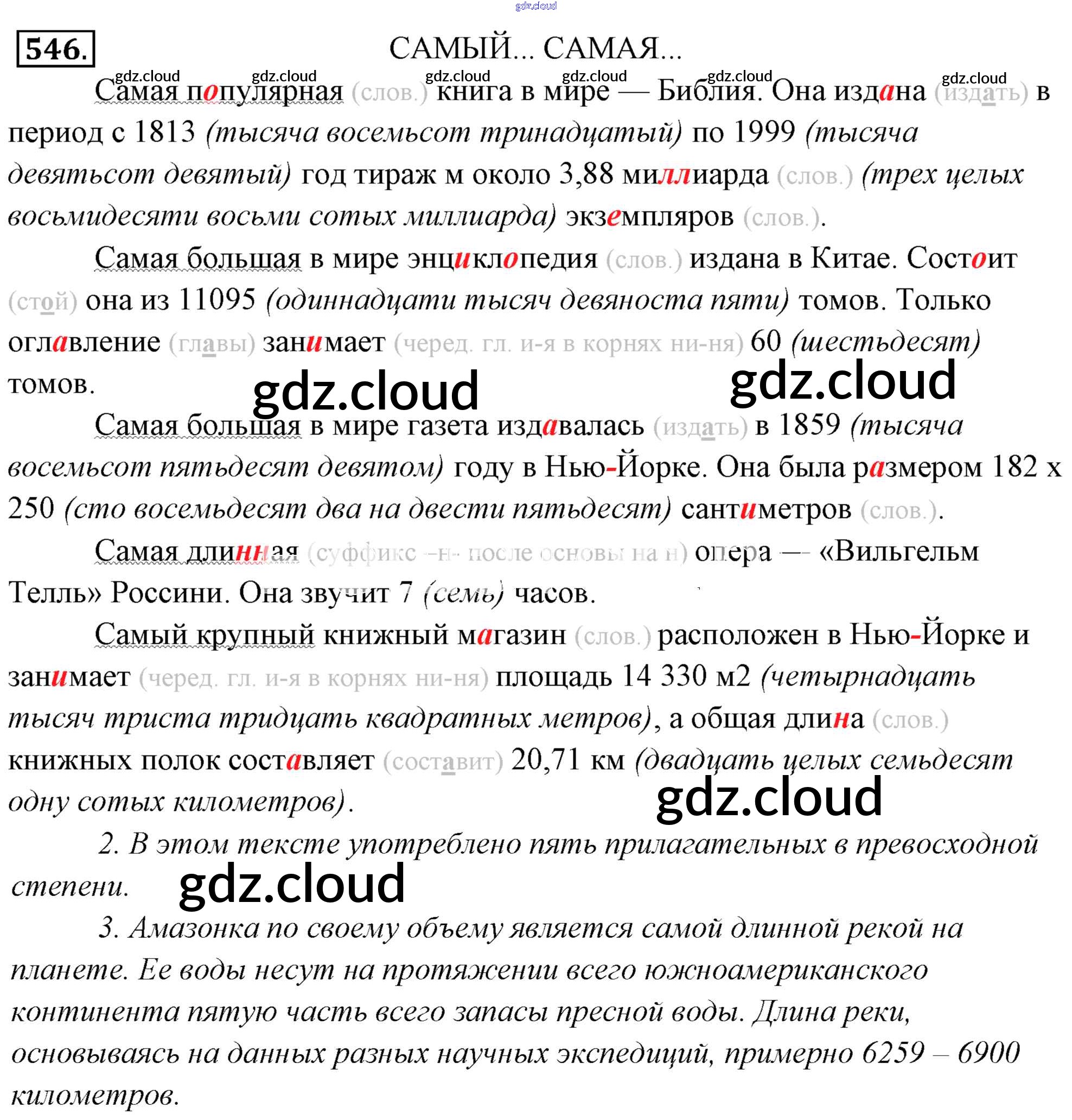 Ответ на задание 546 Учебник Русский язык за 6 (шестой) класс Львова, Львов 2013 Часть 1, 2 ФГОС онлайн и без номера телефона.