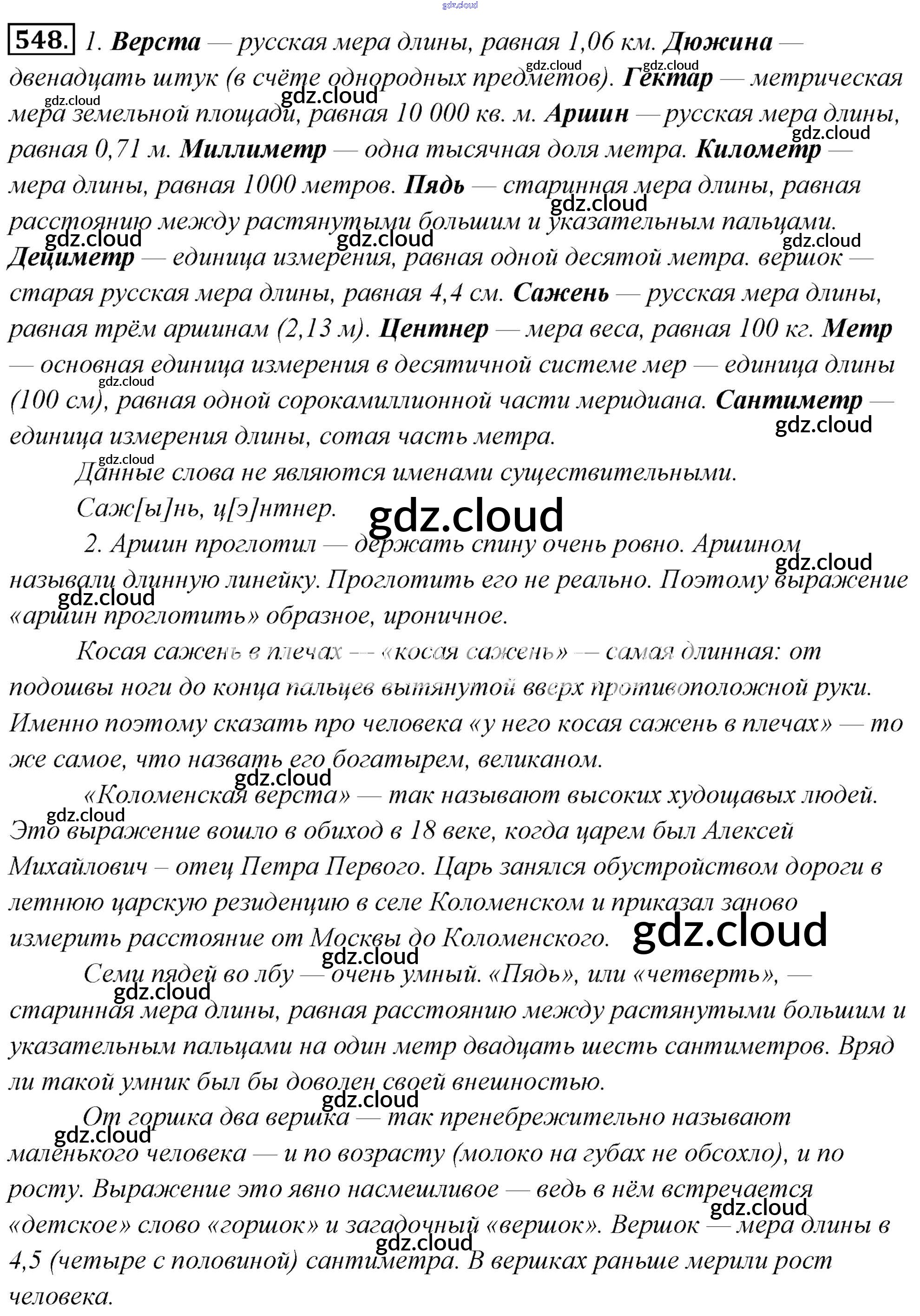 Ответ на задание 548 Учебник Русский язык за 6 (шестой) класс Львова, Львов 2013 Часть 1, 2 ФГОС онлайн и без номера телефона.