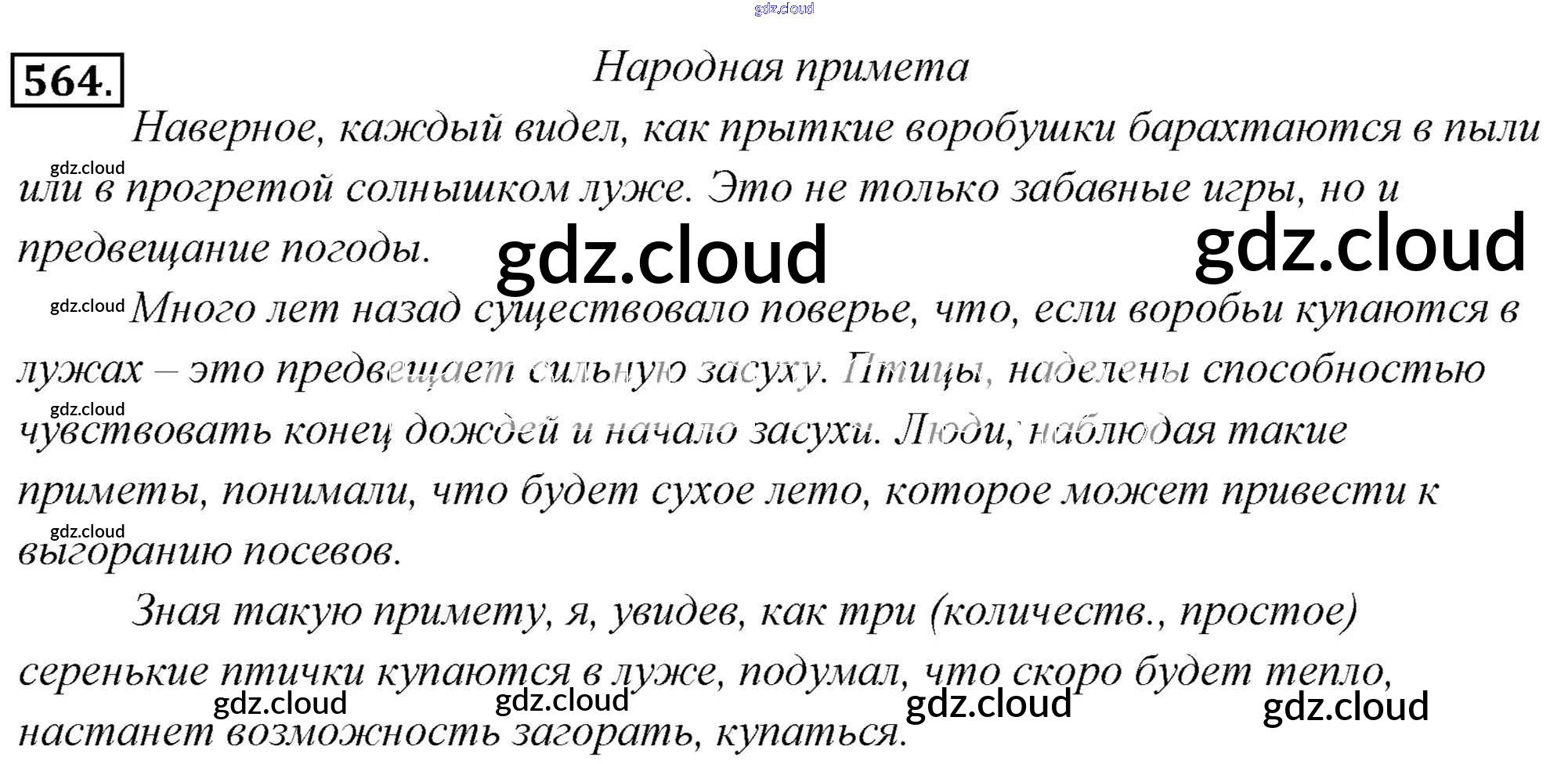 Ответ на задание 564 Учебник Русский язык за 6 (шестой) класс Львова, Львов 2013 Часть 1, 2 ФГОС онлайн и без номера телефона.