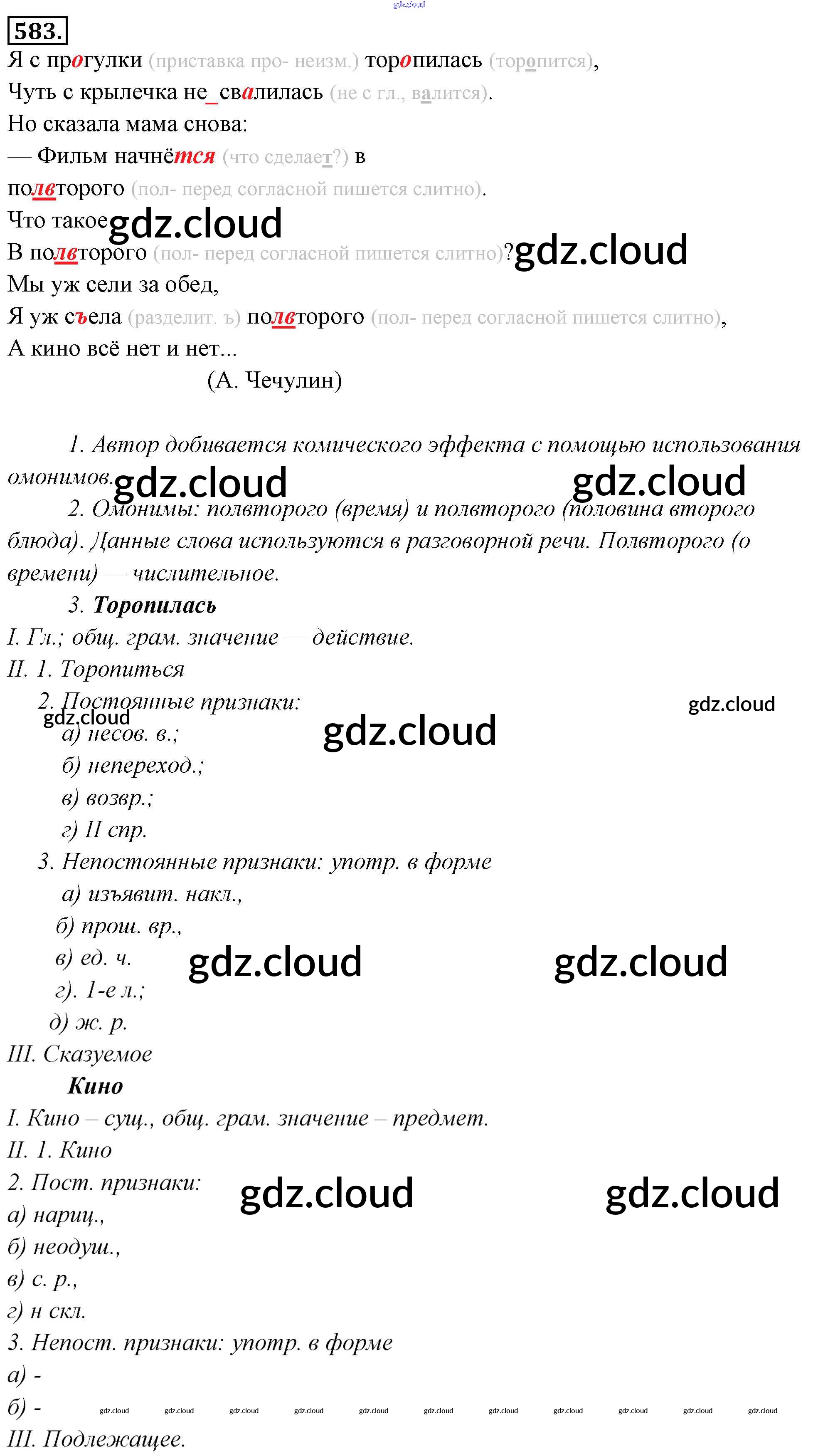 Ответ на задание 583 Учебник Русский язык за 6 (шестой) класс Львова, Львов 2013 Часть 1, 2 ФГОС онлайн и без номера телефона.